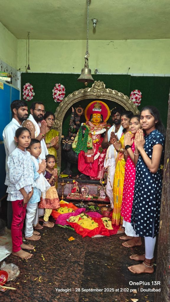 (సూర్యుడు 29 సెప్టెంబర్ రాజేష్) దౌల్తాబాద్ మండల కేంద్రంలో దుర్గ భవాని ఆలయంలో నవరాత్రి ఉత్సవాల సందర్భంగా 7 రోజు చాముండేశ్వరి అవతారంలో కొలువుదీరిన దుర్గ భవాని