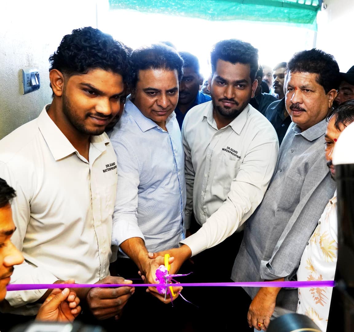 కూకట్పల్లి నియోజకవర్గం అల్లాపూర్ డివిజన్లో డాక్టర్ గార్డ్ వాటర్ ప్రూఫింగ్ కార్యాలయాన్ని నేడు బి.ఆర్.ఎస్ పార్టీ వర్కింగ్ ప్రెసిడెంట్ కేటీఆర్, కూకట్పల్లి ఎమ్మెల్యే మాధవరం కృష్ణారావుతో కలిసి ప్రారంభించారు. ఈ సందర్భంగా కేటీఆర్ మాట్లాడుతూ, స్కూల్ రోజుల నుంచే స్నేహితులుగా ఉన్న తొమ్మిది మంది యువకులు తక్కువ మూలధనంతో ఈ వ్యాపారాన్ని ప్రారంభించడాన్ని అభినందించారు. నాలుగు నెలల వ్యవధిలోనే 30 మందికి పైగా ఉపాధి కల్పించడం గర్వకారణమని, రాబోయే రెండేళ్లలో వెయ్యి మందికి ఉద్యోగావకాశాలు కల్పించాలనే లక్ష్యం ప్రశంసనీయమని అన్నారు. యువత కొత్త ఆలోచనలతో వ్యాపారం ప్రారంభించడం సమాజానికి ఆదర్శమని పేర్కొన్నారు. ఇమ్రోజ్ మరియు ఆయన స్నేహితులు పెద్ద కలలు కనడం స్ఫూర్తిదాయకమని కేటీఆర్ అభివర్ణించారు.ఈ సందర్భంగా పార్టీ ప్రధాన కార్యాలయం తరఫున సంస్థకు వర్క్ ఆర్డర్ను అందజేశారు.