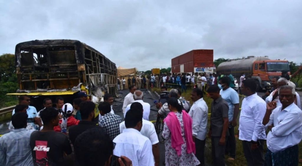 అది బెంగళూరుకు బయలుదేరిన ఒక ప్రైవేట్ వోల్వో బస్సు. కర్నూలు జిల్లాలోని చిన్నటేకూరు వద్ద జాతీయ రహదారిపై ఆ బస్సు వేగంగా వెళ్తోంది. అనుకోని విధంగా ఒక ద్విచక్రవాహనం వచ్చి బస్సును ఢీకొట్టింది. ఆ బైకు బస్సు కిందకు దూసుకెళ్లింది.ఏం జరిగిందో తెలుసుకునే లోపే, బస్సు ముందు భాగం నుండి ఒక్కసారిగా మంటలు లేచాయి. నిమిషాల వ్యవధిలోనే ఆ మంటలు బస్సు మొత్తం వ్యాపించాయి..బస్సులో ఉన్న వారంతా నిద్ర మత్తులో ఉన్నారు. కొందరికి మెలకువ వచ్చి, భయంతో హాహాకారాలు చేశారు.కానీ, వారికి బయటకు వెళ్లే దారి దొరకలేదు.ఆ మంటలు వారిని చుట్టుముట్టాయి.కొందరు ప్రాణ భయంతో అద్దాలు పగలగొట్టుకుని, ఎలాగోలా బయటపడ్డారు. వారికీ తీవ్ర గాయాలయ్యాయి..కానీ, మిగతా వారికి అంత అదృష్టం దక్కలేదు. నిద్రలోనే మృత్యు ఒడికి చేరుకున్నారు. సుమారు ఇరవై మందికి పైగా నిండు ప్రాణాలు ఆ మంటల్లో కాలి బూడిదయ్యాయి. అగ్నిమాపక సిబ్బంది వచ్చేసరికి, జరగాల్సిన ఘోరం జరిగిపోయింది. బస్సు పూర్తిగా కాలిపోయి, కేవలం అస్థిపంజరంలా మిగిలింది.ఆ దృశ్యం… రోడ్డు పక్కన కన్నీరుమున్నీరవుతున్న బంధువులు, తమవారిని గుర్తుపట్టడానికి కూడా వీలు లేని విధంగా కాలిపోయిన మృతదేహాలు… ఆ కుటుంబాలకు తీరని విషాదం, ఆ వేదన వర్ణించలేనిది. హైదరాబాద్ నుండి సంతోషంగా ప్రయాణమైన వారు, చిన్నటేకూరు వద్ద మంటలపాలై, కుటుంబ సభ్యులకు కడసారి చూపు కూడా దక్కకుండా అయిన ఆ దృశ్యం.. నిజంగా గుండెను మెలిపెడుతోంది.