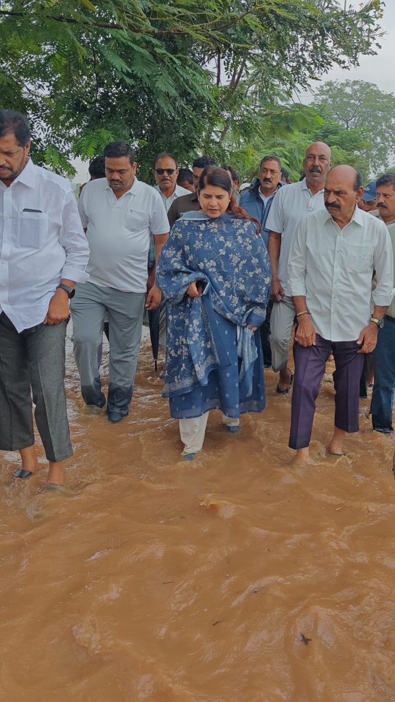 మొంథా తుఫాను నేపథ్యంలో నంద్యాల వరద ప్రభావిత ప్రాంతాల పరిస్థితిని పరిశీలించిన మంత్రి ఎన్ఎండి ఫరూక్, జిల్లా కలెక్టర్ రాజకుమారి