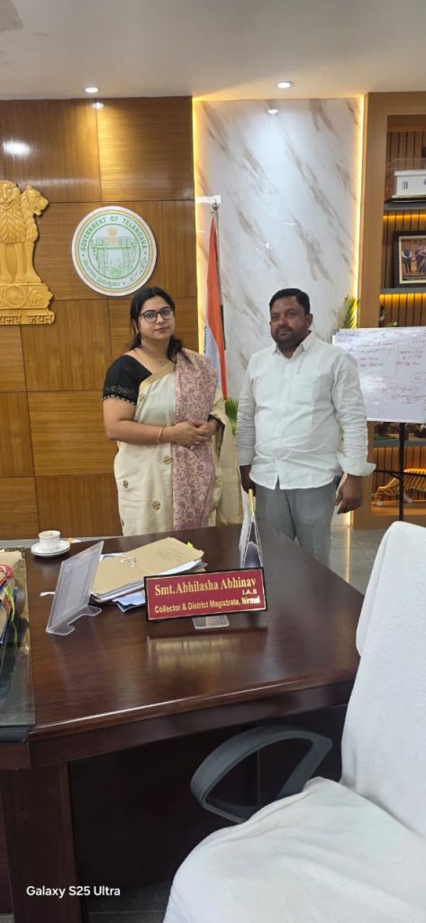 నిర్మల్ జిల్లా కలెక్టర్ ను సన్మానించి శుభాకాంక్షలు తెలిపిన బైంసా మార్కెట్ కమిటీ వైస్ చైర్మన్ ఫారుక్ హమ్మద్