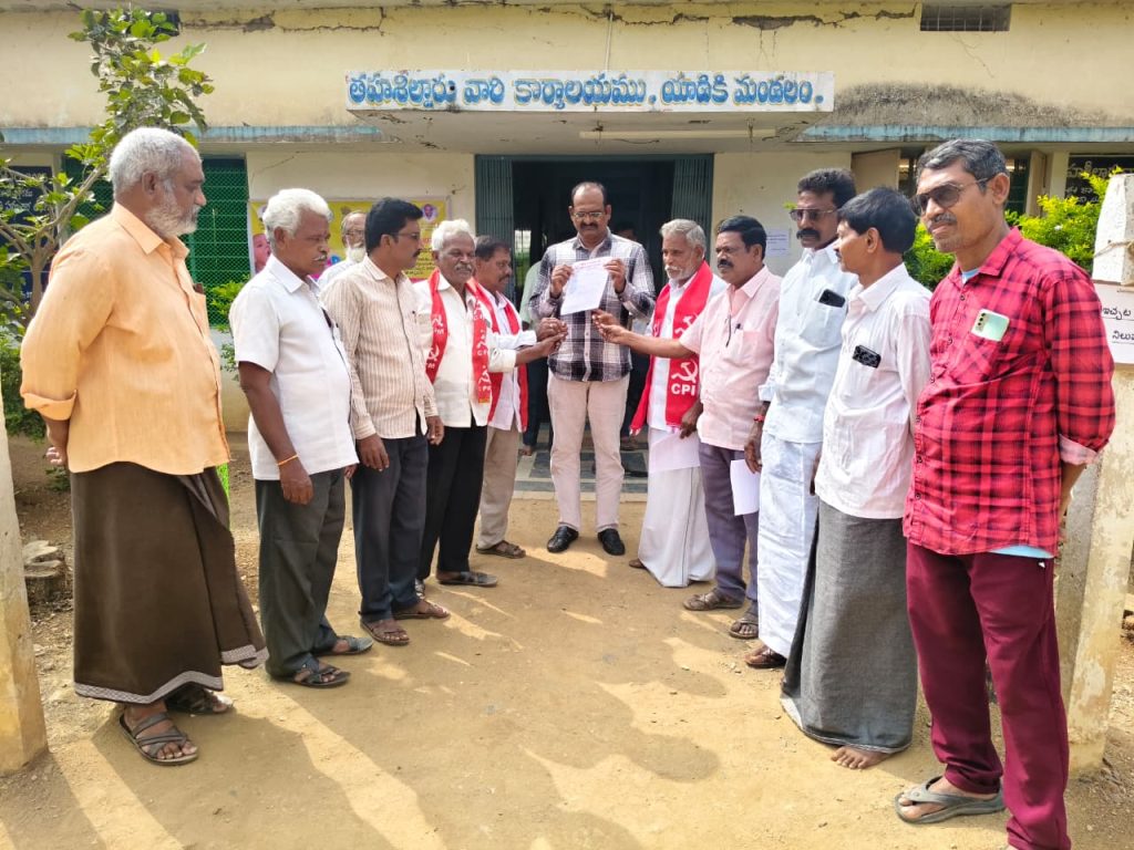 పయనించే సూర్యుడు న్యూస్ డిసెంబర్ 22 శర్మాస్ వలి మండల రిపోర్టర్ యాడికి ఉపాధి హామీ చట్టాన్ని కొనసాగించాలని, కొత్త బిల్లును ఉపసంహరించాలని,కేంద్ర ప్రభుత్వ నిర్ణయాలపై రాష్ట్ర ప్రభుత్వం గట్టిగా స్పందించాలని ఉభయ కమ్యూనిస్టు పార్టీల ఆధ్వర్యంలో సోమవారం డిమాండ్ చేశారు. ముందుగా మండల కేంద్రంలోని ప్రధాన కూడలిలో గాంధీ విగ్రహానికి పూలమాలు వేసి జీవో కాపీలను దగ్ధం చేశారు. అనంతరం తహసీల్దార్ కార్యాలయం ఎదుట నిరసన వ్యక్తం చేశారు ఈ సందర్భంగా సిపిఐ మండల కార్యదర్శి […]