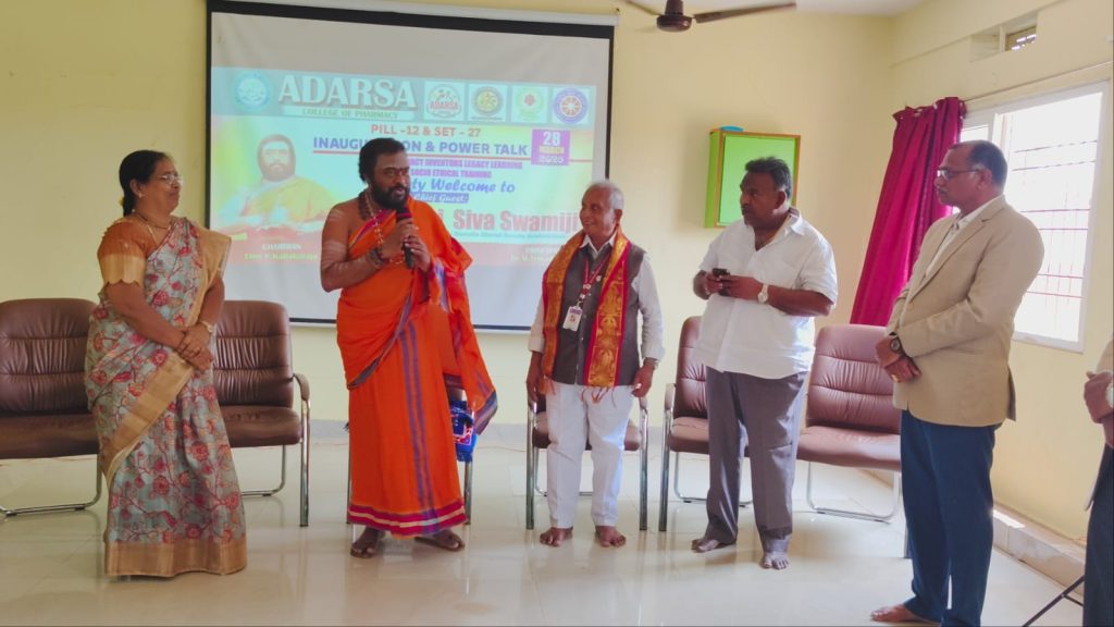 ఆదర్శ కాలేజ్ ఆఫ్ ఫార్మసీలో నేడు పిల్-12మరియు సెట్-27 కార్యక్రమాల ప్రారంభోత్సవం మరియు పవర్ టాక్ అత్యంత వైభవంగా నిర్వహించబడింది. ముఖ్య అతిథిగా పరమ పూజ్య శివ స్వామి వారు మరియు అతిథిగా శ్రీ తడవర్తి రాంబాబు పాల్గొని కార్యక్రమాన్ని విశేషంగా అలరించారు.పూర్ణ కుంభంతో స్వాగతం: