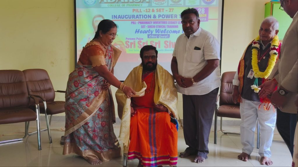 ఆదర్శ కాలేజ్ ఆఫ్ ఫార్మసీలో నేడు పిల్-12మరియు సెట్-27 కార్యక్రమాల ప్రారంభోత్సవం మరియు పవర్ టాక్ అత్యంత వైభవంగా నిర్వహించబడింది. ముఖ్య అతిథిగా పరమ పూజ్య శివ స్వామి వారు మరియు అతిథిగా శ్రీ తడవర్తి రాంబాబు పాల్గొని కార్యక్రమాన్ని విశేషంగా అలరించారు.పూర్ణ కుంభంతో స్వాగతం: