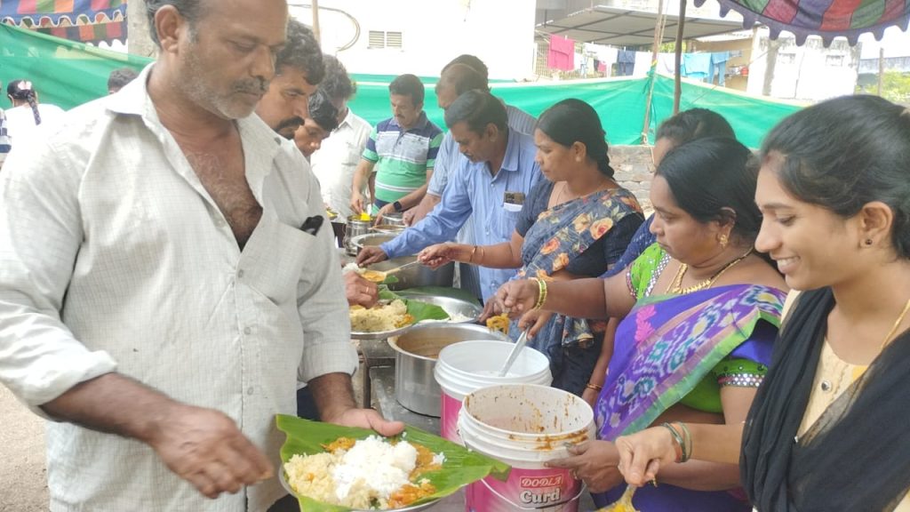 భద్రాద్రి కొత్తగూడెం జిల్లా బూర్గంపాడు మండలం సారపాక ఇరవైండి రోడ్లో ఆధ్యాత్మిక సేవాసమితి వారి ఆధ్వర్యంలో దసరా దేవి శరన్నవరాత్రి మహోత్సవంలో భాగంగా ఏర్పాటుచేసిన అమ్మవారి మండపం వద్ద ప్రతిరోజు అమ్మవారు వివిధ అవతారములలో భక్తులకు దర్శనమిస్తున్నారు భక్తులు అమ్మవారికి ప్రత్యేక పూజలు నిర్వహిస్తున్నారు శరన్నవరాత్రి మహోత్సవంలో భాగంగా తొమ్మిది రోజులు అన్న ప్రసాద వితరణ కార్యక్రమాన్ని ఆధ్యాత్మిక సేవా సమితి వారు ఏర్పాటు చేశారు ఈ సందర్భంగా ఆధ్యాత్మిక సేవా సమితి వారు మాట్లాడుతూ గత 16 సంవత్సరాలుగా దేవి శరన్నవరాత్రి మహోత్సవ సందర్భంగా అమ్మవారి మండపం ఏర్పాటు చేయడం జరుగుతుందని ఇక్కడ అమ్మవారిని ప్రత్యేకంగా విజయవాడ నుండి తెప్పించిన 20వేల గాజులతో అమ్మవారిని అలంకరించడం జరుగుతుందని ఈ గాజులను దేవి శరన్నవరాత్రులు ముగిసిన అనంతరం అమ్మవారి నిమజ్జనం పూర్తయిన తరువాత గ్రామంలోని మహిళలందరికీ ఈ గాజులను ప్రసాదంగా పంచడం జరుగుతుందని అన్నారు అదేవిధంగా దేవి శరన్నవరాత్రి మహోత్సవాలు భాగంగా తొమ్మిది రోజులు కూడా అన్న ప్రసాద వితరణ కార్యక్రమం నిర్వహిస్తున్నామన్నారు. అమ్మవారి పూజా కార్యక్రమాలకు మరియు అన్న ప్రసాద వితరణ కార్యక్రమానికి సహకరించిన ప్రతి ఒక్కరికి పేరుపేరునా ధన్యవాదాలు తెలియజేస్తున్నామన్నారు. ఈ కార్యక్రమంలో ఆధ్యాత్మిక సేవా సమితి సభ్యులు భక్తులు మహిళలు గ్రామ ప్రజలు అధిక సంఖ్యలో పాల్గొన్నారు