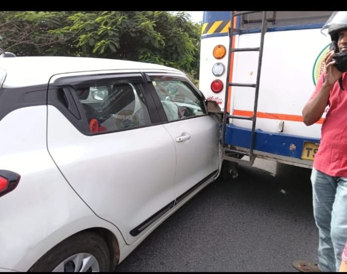 ఆర్టీసీ బస్సులు ఢీ కొట్టిన కారు.