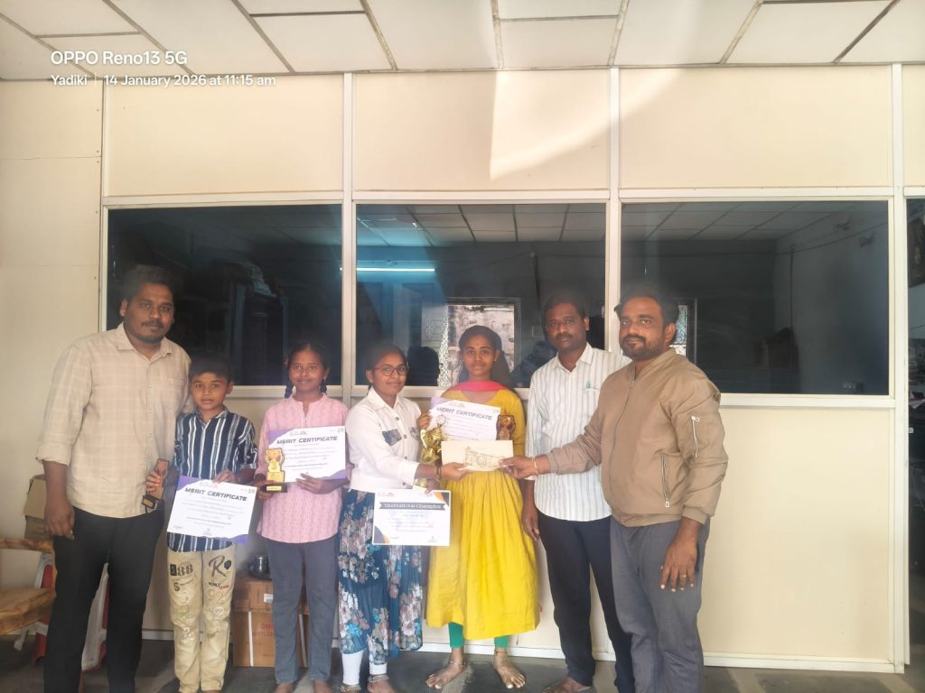 జాతీయ గణిత దినోత్సవం – 2025 సందర్భంగా దేశవ్యాప్తంగా నిర్వహించిన అంతర్జాతీయ వేదిక్ మాథ్స్ లెవెల్ వన్ పోటీలలో యాడికి పట్టణానికి చెందిన విజన్ ఇంగ్లీష్ మీడియం హై స్కూల్ విద్యార్థి మరాఠీ వర్షిత భాయ్ అత్యంత తక్కువ సమయంలో తనకిచ్చిన గణిత సమస్యలను కేవలం 3నిముషాల.4 సెకండ్లలో 75 ప్రశ్నలకు సమాధానాలు పూర్తిచేసి ఇంటర్నేషనల్ వేదిక్ మాథ్స్ ఛాంపియన్ గా నిలబడడం జరిగింది.. అలాగే అదే లెవెల్లో విజన్ ఇంగ్లీష్ మీడియం విద్యార్థులు దాసరి హేమశ్రీ, బిందు శ్రీ,చింత మోక్షిత్ బ్యాచ్ నెంబర్ 1,2,3 స్థానాలను కైవసం చేసుకుని దేశవ్యాప్తంగా యాడికి పట్టణానికి చెందిన విజన్ ఇంగ్లీష్ మీడియం హై స్కూల్ పేరు ను నిలబెట్టడం జరిగింది.. జాతీయ గణత దినోత్సవం సందర్భంగా నిర్వహించిన అవార్డుల ప్రధాన కార్యక్రమంలో వీరికి బహుమతులను ప్రకటించడం అవి కొరియర్ ద్వారా స్కూల్ కి పంపించడం జరిగింది.. వాటిని సంక్రాంతి పండుగ సందర్భంగా విజన్ విద్యాసంస్థల కరస్పాండెంట్ విశ్వనాథ్ చేతుల మీదుగా విద్యార్థులకు వారి తల్లి దండ్రుల సమక్షంలో అందించడం జరిగింది. వీరిని తీర్చిదిద్దిన మ్యాథమెటిక్స్ టీచర్ అనిల్ ని మరియు విద్యార్థులని కరెస్పాండెంట్ విశ్వనాథ్ అభినందించడం జరిగింది…