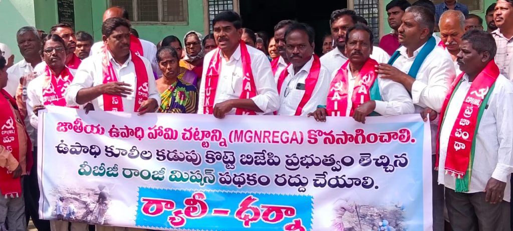 -. కేంద్రం తెచ్చిన కొత్త ఎం జి ఎన్ రాం పథకాన్ని రద్దు చేసి పాత జాతీయ గ్రామీణ ఉపాధి హామీ పథకాన్ని పునంప్రారంభించాలి -. అఖిలభారత ఐక్య రైతు సంఘము ఐ యు కె ఎస్ రాష్ట్ర అధ్యక్షులు వి ప్రభాకర్