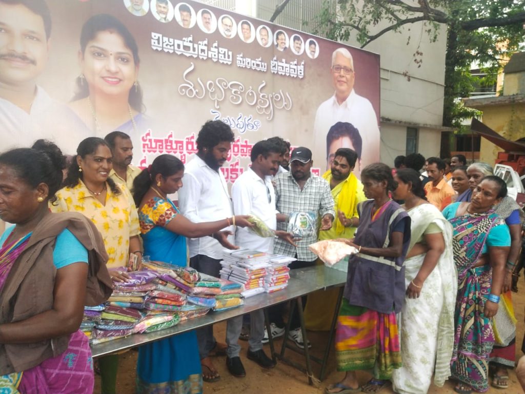 దసరా మరియు దీపాలు సందర్భంగా సూళ్లూరుపేట మున్సిపల్ కార్మికులకు బట్టల పంపిణీ కార్యక్రమం చేపట్టారు ఈ కార్యక్రమం కి విచ్చేసిన ఆంధ్రప్రదేశ్ టిడ్కో చైర్మన్ శ్రీ వేములపాటి అజయ్ కుమార్ ఆదేశాలు మేరకు ఈరోజు సూళ్లూరుపేట జనసేన పార్టీ నాయకులు శ్రీ శంకు సురేష్ సహకారంతో. మునిసిపల్ కమిషనర్ చిన్నయ్య చేతుల మీదగా మునిసిపల్ పారిశుద్ధ కార్మికులకు సుమారు 200 మంది మహిళలకు చీరలు, పురుషులకు పంచీలు స్వీట్లు ఇవ్వడం జరిగింది. ఈ కార్యక్రమంలో సూళ్లూరుపేట జనసేన పార్టీ రాయలసీమ జోనల్ కమిటీ సభ్యులు మా బాషా . సూళ్లూరుపేట మండల అధ్యక్షులు ఆవుల రమణ . నక్కా హరి బాబు, ఆవుల దాసు,కోటి యాదవ్ సాకి హరి,సూరి,జనసేన వీర మహిళలు పద్మజ, సుజాత పాల్గొన్నారు.