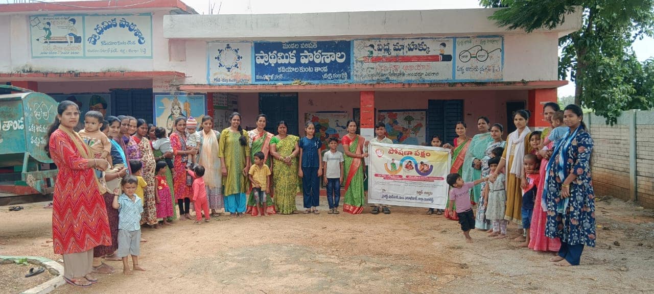 రంగారెడ్డి జిల్లా ఫరూక్నగర్ మండలం లోని కడియాలకుంట తండా అంగన్వాడీ కేంద్రంలో పోషణ మాసం ఘనంగా నిర్వహించారు. చిన్నపిల్లలకు పోషణ ఆహారం అందించాలని, పిల్లలపై పోషణ ఆహారం ప్రభావం పడకుండా చూడాలని తల్లిదండ్రులను సూచించారు. అంతేకాకుండా పసి పిల్లలకు తల్లిపాల ప్రాముఖ్యత గురించి వివరించడం జరిగింది. ప్రతి చిన్న పిల్లలకు తల్లిపాలే బలం అని దాని ద్వారా పిల్లల యొక్క రోగనిరోధక శక్తి పెరుగుతుందని పిల్లల తల్లులకు వివరించారు. మరియు చిన్నపిల్లలకు గర్భవతి మహిళలకు మంచి పౌష్టికాహారం తీసుకోవాలని సూచించడం జరిగింది. పౌష్టికాహారం చిన్నపిల్లల తల్లులకు మరియు గ్రామ ప్రజలకు తెలియజేయడం జరిగింది. ఈ కార్యక్రమంలో ఐసిడిఎస్ సూపర్వైజర్ సంధ్యారాణి, ప్రగతి వెల్ఫేర్ సొసైటీ నవ్య, అంగన్వాడీ టీచర్ సుజాత, హేమలత మరియు నిర్మల, పిల్లల తల్లులు గర్భవతులు మరియు బాలింతలు పాల్గొన్నారు.