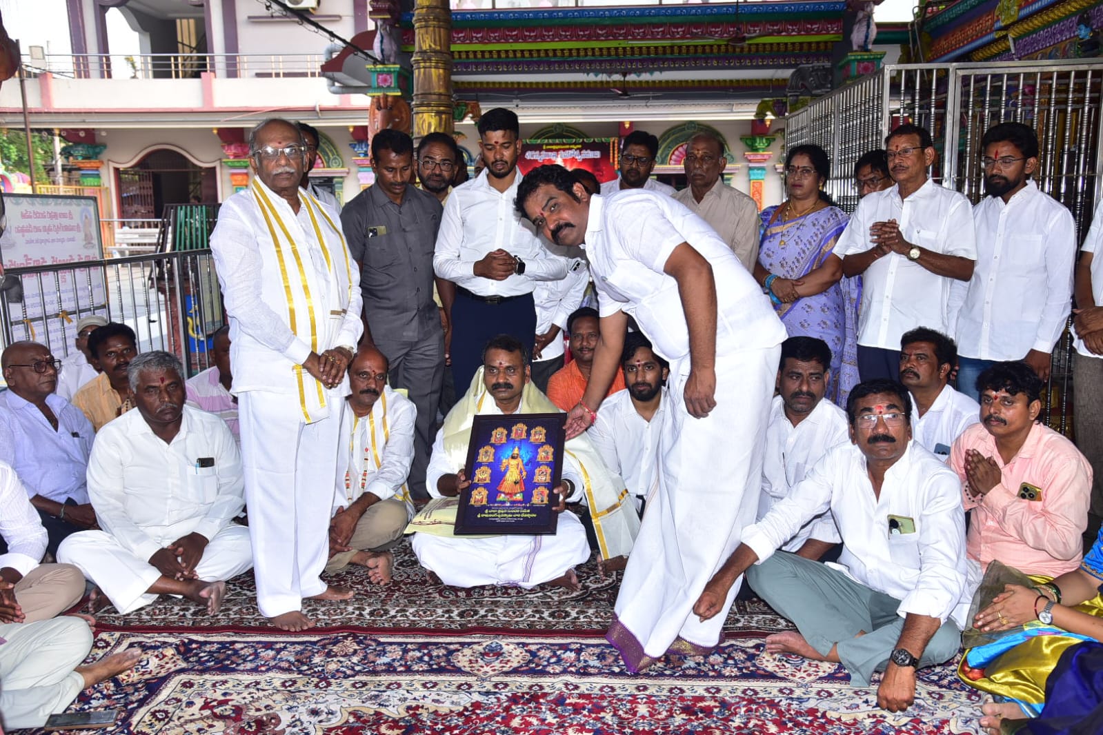 పయనించే సూర్యుడు ఏప్రిల్ 30 ముమ్మిడివరం ప్రతినిధి గ్రంధి నానాజీ ; కాకినాడ : కేంద్ర సమాచార, ప్రసార మరియు పార్లమెంట్ వ్యవహారాల శాఖ సహాయ మంత్రివర్యులు డా. ఎల్. మురుగన్ బుధవారం వ్యక్తిగత పర్యటనలో భాగంగా కాకినాడ చేరుకున్నారు.స్థానిక హోటల్లో బసచేసిన మంత్రికి జిల్లా కలెక్టర్ హరేందిర ప్రసాద్ మర్యాదపూర్వకంగా కలిసి స్వాగతం పలికారు. అనంతరం బాలాత్రిపురసుందరి అమ్మవారిని దర్శించుకున్నారు. ఆలయ చైర్మన్ గ్రంథి నారాయణ రావు, ఈవో వీర్రాజు చౌదరి, కమిటీ సభ్యులు స్వాగతం పలికారు. అనంతరం వేదపండితులు ఆశీర్వచనాలు అందించగా ఈవో, చైర్మన్ అమ్మవారి చిత్రపటం ప్రసాదాలు అందజేశారు. కార్యక్రమంలో తెదేపా యువనేత మోహన్ వర్మ, నగర టిడిపి అధ్యక్షుడు మల్లిపూడి వీరు, జిల్లా బీజేపీ అధ్యక్షుడు బిక్కిన విశ్వేశ్వరరావు, యెనిమిరెడ్డి మాలకొండయ్య, బీజేపీ నేతలు దేవాదాయ శాఖ అధికారులు పాల్గొన్నారు.