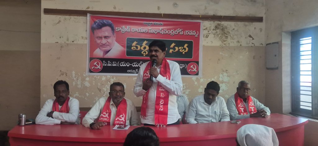 భారత దేశంలో దేశ పరిస్థితులకు అనుకూలంగా సరి అయినా పంథా, విప్లవపంథా కోసం చివరిదాకా పోరాడిన విప్లవయోధుడు కామ్రేడ్ రాయల సుభాష్ చంద్రబోస్ ( రవన్న) 10 వ వర్ధంతి నీ ఆర్మూర్ పట్టణ కేంద్రంలో కుమార్ నారాయణ భవన్ లో నిర్వహించడం జరిగింది . *రవన్న చిత్ర పటానికి పూలమాలవేసి నివాళ్ళు అర్పించారు ఈ సందర్భంగా సిపిఐఎంఎల్ లైన్ (ప్రజా పంథా) ముఖ్య వక్త గా జిల్లా కార్యదర్శి వి ప్రభాకర్ ఆర్మూర్ డివిజన్ కార్యదర్శి బి దేవారం లు మాట్లాడుతూ . సిపిఐ ఎంఎల్ లైన్( ప్రజా పంథా) రాష్ట్ర కార్యదర్శిగా, జాతీయ నాయకుడిగా సుధీర్గకాలంగా రహస్యంగా పని చేశాడు కామ్రేడ్ రాయల రవన్న 40 సంవత్సరాలు అజ్ఞాత జీవితం గడిపి భారత దేశ భౌతిక పరిస్థితులకు అనుగుణంగా విప్లవపంథా ఉండాలని విప్లవకారులు ఐక్యంగా పనిచేయాలని తన చివరిదాకా ఊపిరి ఉన్నంతకాలం విప్లవోద్యమ నాయకుడిగా పని చేశారన్నారు. భారత దేశ సమకాలిన పరిస్థితులకు అనుగుణంగా ప్రజాపంథా లైన్ ను మరింతగా బలపరచుకొని ముందుకు తీసుకు వెళ్లాల్సిన బాధ్యత కామ్రేడ్ రాయల గారి స్ఫూర్తితో మరింత ఉత్తేజంతో విప్లవోద్యమాలను మరింతగా ముందుకు తీసుకుపోవాలని పిలుపునిచ్చారు. పిడివాద తదితర ధోరణులను ఎదుర్కొని బలమైన ప్రజా ఉద్యమ నిర్మాణానికి విప్లవ సైనికులంతా పూనుకోవాలని పిలుపునిచ్చారు. విప్లవోద్యమ నిర్మాణానికి వాటి రాష్ట్ర కార్యదర్శిగా పార్టీ పనిని సమన్యాయం చేస్తూనే నిజాంబాద్ వరంగల్ ఖమ్మం ఉభయగోదావరి జిల్లాలలో ఆనాటి పీపుల్స్ వారి జనశక్తి ప్రతిఘటన ప్రజా ప్రతిఘటన దాడులను ఎదుర్కోవడానికి తన దళంతో ప్రజలతో ఉండి ధైర్యాన్ని ఇచ్చి నిలబెట్టాడు కార్యకర్తలను ఉద్యమాన్ని రక్షిస్తూ కృషిలో అలుపు లేకుండా వెనకకు ముందుకు చూడకుండా వెలిచాడు అంతేకాకుండా మహబూబ్నగర్ నుంచి ఉత్తరాంధ్ర దాకా పార్టీ నిర్మాణయుతంగా పని చేయించడానికి తన శక్తిని ఉపయోగించారు. కామ్రేడ్ రవి అన్న ప్రజాపంద బాటలో విధానాన్ని నమ్మిc ఆచరించాడు అతివాద మితవాద పేట దొరలను వ్యతిరేకించాడు ప్రతి కమ్యూనిస్టు ప్రజలతో మరింత సన్నిహితంగా అభిమాన నాయకుడిగా ఎదగాలని కోరుకున్నాడు తన ప్రత్యేక కృషి ద్వారా ఎందరో కార్యకర్తలు నాయకులను సానుభూతిపరులను తయారు చేశాడు నిత్య కృషి వరుడు జీవితాన్ని విప్లవానికి సార్ధకంగా మలుచుకున్నాడు 1984 సిద్ధాంత పోరాటంలో 20 సంవత్సరాల సమీక్ష అడవి ఉద్యమ పాట లో రచనలో ఆ తర్వాత ప్రజాపంధా రాజకీయాలలో ముఖ్య పాత్ర ఉన్నదానివారన్నారు. ఆయన స్ఫూర్తితో కేంద్ర ప్రభుత్వం అనుసరిస్తున్న ఆపరేషన్ పేరుతో మావోయిస్టు ఉద్యమాన్ని వెన్నెముక విడిచి కేంద్ర ప్రభుత్వం ఇతరుల పైన విరుచుకుపడడానికి కనీస ప్రజాస్వామిక వాంఛలను ప్రశ్నలను అదీకరించడం నిరంకుశ పద్ధతులకు దిగుతుందని మావోయిస్టు పార్టీ