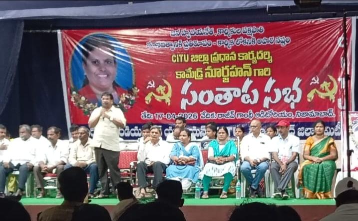 పట్ల పోరుసలపాలి సీఐటీయూ రాష్ట్ర అధ్యక్షుడు ఎస్.వీరయ్య సంస్మరణ సభలో జోహార్లు అర్పించిన పలువురు నిజామాబాద్ ‘కేంద్రంలోని బీజేపీ ప్రభుత్వం కార్మికుడి జీవితంపై దాడి చేస్తూ కట్టుబానిసలుగా మార్చేందుకు నాలుగు లేబర్ కోడ్లను తీసుకొచ్చింది. సంఘం పెట్టుకోకుండా, పోరాటాలు చేయకుండా, హక్కుల గురించి ప్రశ్నించకుండా ఎట్టిచాకిరీ చేయించాలని చూస్తుంది. ఈ క్రమంలో కార్మికులు, సంఘాలు ఐక్యంగా పోరాటాలు చేయకుండా కులం, మతం పేరిట దేవుడి పేరిట ప్రజలను, కార్మికులను చీల్చుతున్నారు. కార్మికవర్గ ఐక్యతకు, పోరాటాలకు నూర్జహాన్ సింబల్. కార్మిక విచ్చిన్నకర శక్తులకు వ్యతిరేకంగా పోరాటమే ఆమెకు నివాళి’ అని సీఐటీయూ రాష్ట్ర ప్రధాన కార్యదర్శి పాలడుగు భాస్కర్ అన్నారు. సీఐటీయూ నిజామాబాద్ జిల్లా ప్రధాన కార్యదర్శి నూర్జహాన్ ఈ నెల 11వ తేదీన అనారోగ్య సమస్యతో మృతిచెందగా.. యూనియన్ జిల్లా కమిటీ ఆధ్వర్యంలో నిజామాబాద్ జిల్లా కేంద్రంలోని రాజీవ్ గాంధీ ఆడిటోరియంలో శుక్రవారం సంస్మరణ సభ నిర్వహించారు. ముందుగా ఆమె చిత్రపటానికి పూలమాల అర్పించి నివాళి అర్పించారు. సీఐటీయూతో పాటు ప్రజా సంఘాల నాయకులు, వివిధ రంగాల కార్మికులు హాజరై నివాళి అర్పించారు. సీఐటీయూ జిల్లా అధ్యక్షుడు శంకర్ గౌడ్ అధ్యక్షత వహించగా.. ముందుగా పాలడుగు భాస్కర్ మాట్లాడారు. నూర్జహాన్ అతిచిన్న వయసులోనే పోరాటంలో పరుగులు పెడుతూ అభాగ్యులకు, దోపిడీకి గురవుతున్న వారికి అండగా నిలిచిన ధ్రువతార దూరమైందని అన్నారు. భౌతికంగా ఆమె లేకపోవడం ఇటు సీఐటీయూకు ఆటు ఆమె కుటుంబానికి తీవ్ర లోటు అని అన్నారు. ఆటంకాలు, ఒడిదుడుకులు ఎదురైనా పోరాటాలు ఆపకుండా ముందుకువెళ్లి నిలుచున్నారని, పోరాటం చేపడితే ఫలితం వచ్చే వరకూ పోరాటం చేసిన ధైర్యశీలీ, దీశాలని అని కొనియాడారు. నూర్జహాన్ అంటే ధైర్యం అని, అదే పాత్ర జిల్లా నాయకత్వం పోషించాలని, ఒక్కో కార్మికుడు ఒక్కో నూర్జహాన్ గా మారి పోరాటాలు నిర్వహించాలని పిలుపునిచ్చారు. ఇందుకోసం రాష్ట్ర కమిటీ జిల్లా కమిటీకి సహకారం అందిస్తుందని తెలిపారు. కీలకసమయంలో దూరమైంది : సీఐటీయూ రాష్ట్ర ఉపాధ్యక్షులు ఎస్ వీరయ్య ఒక వైపు అమెరికా సామ్రాజ్యవాదంతో యుద్ధాలు చేస్తుండటంతో మన దేశంలో నిత్యావసర వస్తువుల ధరలు సీఐటీయూ రాష్ట్ర ఉపాధ్యక్షులు ఎస్ వీరయ్య అన్నారు. ఒక వైపు ధరల పెరుగుదల, మరో వైపు కార్మిక చట్టాల రద్దుతో కార్మికులపై నిరంకుశత్వంగా కేంద్రం వ్యవహరిస్తుందని, దీనికి తోడు మతం పేరుతో వైశమ్యాలు పెంచుతూ కార్మికుల ఐక్యతను విడగొడుతున్నారని ఇలాంటి సమయంలో కార్మిక ఐక్య ఉద్యమాలు నిర్వర్తించే నూర్జహాన్ కీలక సమయంలో మన నుంచి దూరమైయ్యారని అన్నారు. దోపిడీ వ్యవస్థ పోవాలి.. సోషలిస్టు సమాజం కావాలని తొలి
