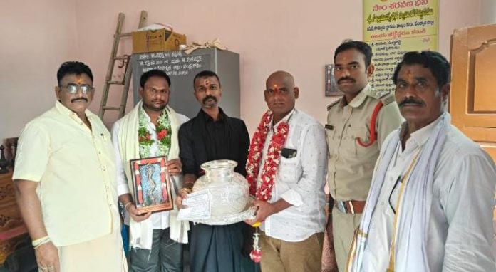 ప్రముఖ శైవక్షేత్రము లక్షలాది మంది భక్తుల ఆరాధ్య దైవము పాణ్యం మండలం ఎస్.కొత్తూరు గ్రామంలో వెలిసిన శ్రీ సుబ్రహ్మణ్యేశ్వర స్వామి వారికి 3 కేజీల 244 గ్రాముల వెండి వస్తువులు ఆదివారం వితరణ చేసినట్లు ఆలయ ఈవో యం.రామక్రిష్ణ తెలిపారు. బండి ఆత్మకూరు మండలం పార్నపల్లె గ్రామానికి చెందిన దేరెడ్డి నాగిరెడ్డి, దేరెడ్డి నాగ మునీశ్వర రెడ్డి వారి కుటుంబ సభ్యులకు స్వామివారు ఇంటి ఇలవేల్పు కావడంతో మొక్కుబడిగా “వెండి బిందె, వెండి పళ్ళెము, వెండి చెంబు” మూడు వస్తువులు 3 కేజీల 244 గ్రాములు విరాళంగా కార్యనిర్వాహణాధికారికి సమర్పించారు. వీటి విలువ సుమారు 5 లక్షల రూపాయలు ఉంటుందన్నారు. దాతలకు ఆలయ మర్యాదలతో అభిషేకములు, అర్చనలు, విశేష పూజలు నిర్వహించి పూలమాలలు, శాలువాలతో ఘనంగా సత్కరించారు. ఈ కార్యక్రమంలో నారాయణస్వామి, పాణ్యం ట్రైనింగ్ ఎస్సై ధనుంజయ, గ్రామ పెద్దలు మిలిటరీ సుబ్బారెడ్డి, దాత కుటుంబ సభ్యులు, ఆలయ సిబ్బంది తదితరులు పాల్గొన్నారు.