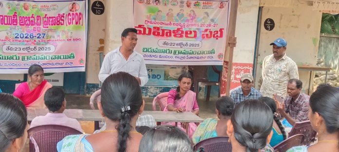 అల్లూరి సీతారామరాజు జిల్లా రంపచోడవరం నియోజకవర్గం చింతూరు మండలం చిడుమూరు గ్రామ సర్పంచ్ కాక అరుణ కుమారి అధ్యక్షతన గ్రామపంచాయతీ అభివృద్ధి ప్రణాళిక (జీపీడీపీ) గ్రామ సభ జరిగినది ఈ గ్రామ సభలో పంచాయతీ సెక్రటరీ ఈ గ్రామ సభ యొక్క ప్రాధాన్యతను వివరించి గ్రామ అభివృద్ధికి సంబంధించిన అనేక విభాగాల అంశాలను క్రోఢీకరించి ప్రణాళికను రూపొందించుకోవాలని తెలియజేశారు, గ్రామస్తులు వారి సమస్యలను తెలియజేసి త్వరితగతిన పరిష్కరించగలరని విన్నవించుకున్నారు. సుస్థిర అభివృద్ధి లక్ష్యాల సాధనకు కేంద్ర మరియు రాష్ట్ర ప్రభుత్వాల ఆదేశాలకు అనుగుణంగా చట్టి గ్రామపంచాయతీ అభివృద్ధి ప్రణాళికను రూపొందించి వీలైనంత త్వరగా గ్రామ సమస్యల పరిష్కారానికి కృషి చేస్తామని పంచాయతీ కార్యదర్శి తెలియజేశారు. ఈ గ్రామసభలో ప్రజాప్రతినిధులు ,సచివాలయ సెక్రటరీ గోపాలకృష్ణ, సచివాలయం సిబ్బంది,అంగన్వాడి, ఆశ, డ్వాక్రా యానిమేటర్లు,MGNREGS ఫీల్డ్ అసిస్టెంట్, ఉపసర్పంచి బొక్కలి శాంతమ్మ, పేసా కమిటీ సభ్యులు పిసం దూలయ్య, బొక్కలి రాంబాబు, పిసం రామయ్య, సోయం కన్నయ్య, కుంజా బాలకృష్ణ, మాజీ ఎంపీటీసీ, బొక్కలి ప్రసాద్, గ్రామ పెద్దలు పాల్గొన్నారు.