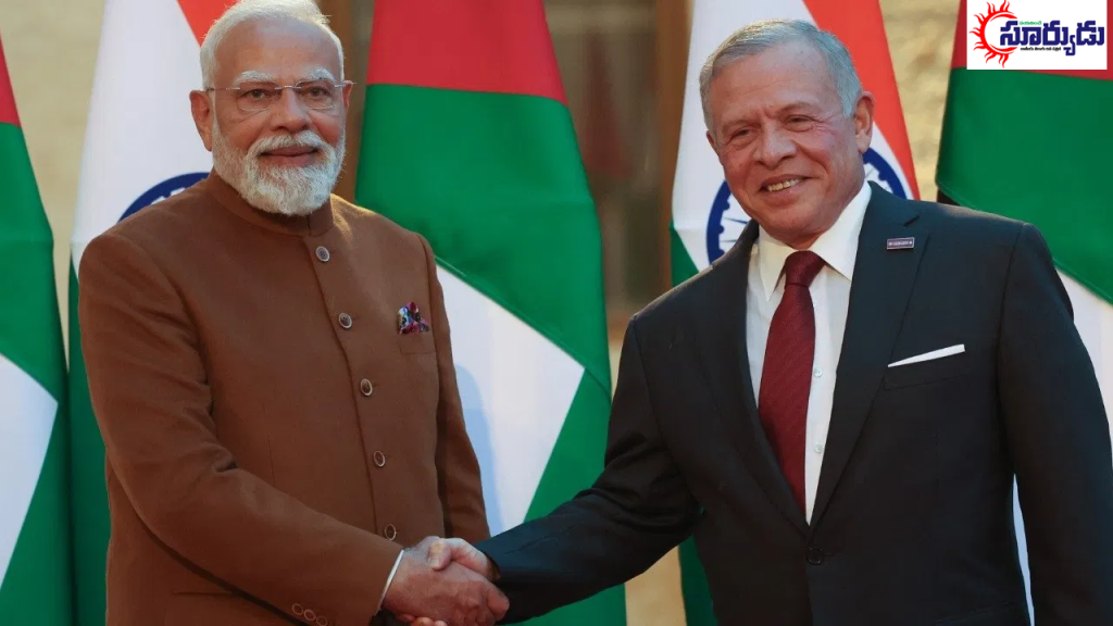 పయనించే సూర్యుడు న్యూస్ :ప్రధాని మోదీ సోమవారం జోర్డాన్ పర్యటనకు వెళ్లగా.. అక్కడ ఘన స్వాగతం లభించింది. ఈ సందర్బంగా ఆ దేశ రాజు అబ్దుల్లా-2 ఇబిన్ అల్ హుసేన్‌తో భేటీ అయ్యారు. ఈ సమావేశంలో ఇరు దేశాల మధ్య నెలకొన్న సంబంధాలు, జాతీయ, అంతర్జాతీయ పరిణామాలతో పాటు రెండు దేశాల మధ్య దౌత్య, ద్వైపాక్షిక సంబంధాలపై చర్చించారు. ఈ కీలక భేటీలో రెండు దేశాల మధ్య పలు అగ్రిమెంట్లు జరిగాయి. ఈ విషయాన్ని ప్రధాని మోదీ