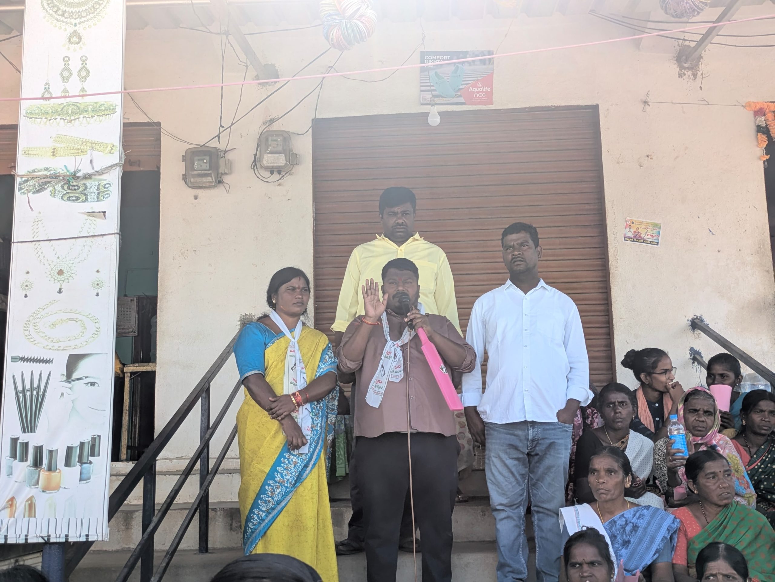 చెరుకుపల్లి రాకేష్రాజన్న సిరిసిల్ల జిల్లా తంగళ్ళపల్లి మండల కేంద్రంలోని జిల్లెల్ల గ్రామపంచాయతీ సర్పంచ్ అభ్యర్థిగా పోటీ చేస్తున్న దుబ్బాక రజిత రమేష్ ప్రచారం భారీ ఎత్తున కొనసాగుతోంది.బ్యాలెట్ నెంబర్ 3 – బ్యాట్ గుర్తు పై ఓటు వేసి గెలిపించాలని కోరుతూ రజిత రమేష్ నిర్వహించిన ప్రచారానికి ఈరోజు జిల్లాల ఎక్స్ రోడ్ ప్రాంతంలో పెద్ద ఎత్తున ప్రజలు హాజరయ్యారు.ప్రజాసంచారం సందడిగా మారిన ఈ ప్రచారంలో స్థానిక ప్రజలు, మహిళలు, యువత పెద్ద సంఖ్యలో పాల్గొని తమ మద్దతును ప్రకటించారు. గ్రామ అభివృద్ధి, శుద్ధి నీటి సరఫరా, రహదారి సౌకర్యాలు, వెలుగుల ఏర్పాట్లు వంటి పలు అంశాలను ప్రజలు ముందుకు తీసుకెళ్తానని రజిత రమేష్ హామీ ఇచ్చారు.ప్రచారం ఉత్సాహభరితంగా సాగుతుండగా, గ్రామ ప్రజలు బ్యాట్ గుర్తుకు బలమైన మద్దతు తెలిపారు.
