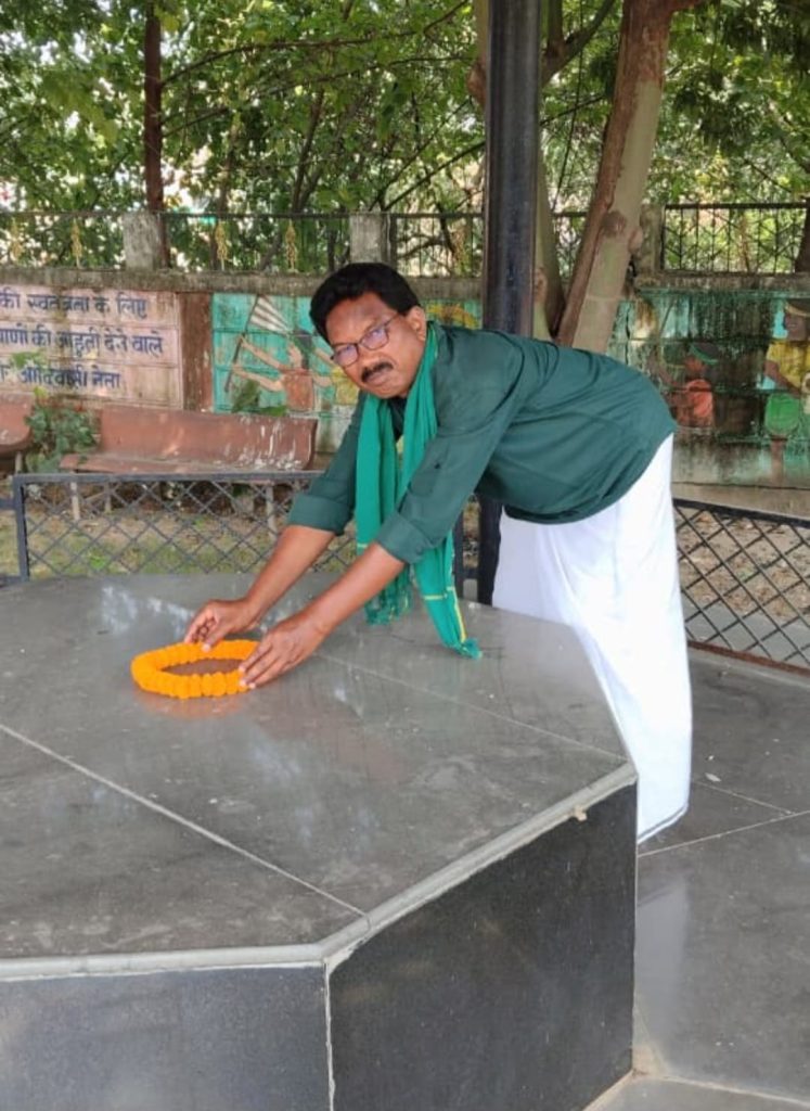 పయనించే సూర్యుడు రీపోట్టర్ జల్లి నరేష్ చింతూరు డివిజన్ ఇంచార్జ్ అక్టోబర్ 14 జార్ఖండ్ రాష్ట్రం,రాంఛిలో భగవాన్ బిర్సాముండా సమాధిని సందర్శించిడం అదృష్టంగా భావిస్తున్నమని భారత్ ఆదివాసీపార్టీ