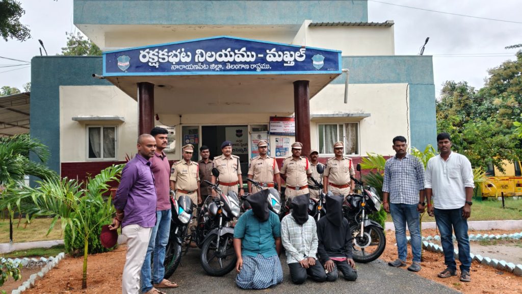 డిఎస్పీ ఎన్.లింగయ్య. //పయనించే సూర్యుడు// సెప్టెంబర్26// మక్తల్ మక్తల్. అంతరాష్ట్ర ముగ్గురు దొంగల ముఠాను అరెస్టు చేసి వారి నుంచి నాలుగు లక్షల విలువైన ఐదు షైన్