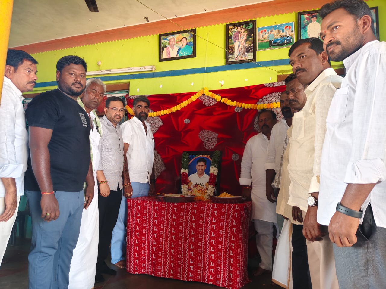 గురువారం మధ్యాహ్నం టి సుండుపల్లి మండలం చిన్న గొల్లపల్లి గ్రామం అప్పయ్య గారి పల్లి కొత్త నాయునివారిపల్లె కు చెందిన (గురిగింజ కుంట రామప్ప నాయుడు పెద్ద కుమారుడైన*) గురిగింజకుంట శివయ్య *నాయుడు చిత్రపటానికి నివాళులర్పించిన రాజంపేట తెలుగుదేశం పార్టీ పార్లమెంట్ అధ్యక్షులు సుగవాసి ప్రసాద్ బాబు మరియు గుట్ట బాబు ఈ కార్యక్రమంలో తెలుగుదేశం పార్టీ రాష్ట్ర కార్యదర్శి చప్పిడి మహేష్ నాయుడు సుండుపల్లి మండల అధ్యక్షుడు చప్పిడి రమేష్ నాయుడు గురిగింజ కుంట శివకుమార్ నాయుడు, కోటికే సుబ్బరామప్ప నాయుడు,, బడిశెట్టి ,రవి టీడీపీ బీసీ సాధికార సమితి పాల ఏకరి రాజంపేట కమిటీ సభ్యులు గురిగింజకుంట రెడ్డి మల్లప్ప నాయుడు, గురిగింజ కుంట శ్రీనివాస నాయుడు, కోటికి అశోక్ నాయుడు,మెరుగు నాగప్ప నాయుడు మెరుగు సుదర్శన్ నాయుడు, మెరుగు వెంకటేశ్వర నాయుడు, మెరుగు నరసింహ నాయుడు, నాగార్జున నాయుడు,జరుగుమల్లి రమణయ్య మణికుమార్ దేవేంద్ర గంగాధర వెంకటరమణ ,వినోద్ , సుధీర్ నాయుడు, వెంకటేష్ నాయుడు, రెడ్డి నాయక్ ఇస్మాయిల్, గోళ్ల కృష్ణం నాయుడుతిరుమలరెడ్డి శివారెడ్డి,నాగ సుబ్బయ్య, ప్రవీణ్ కుమార్ రాజు, గురిగింజకుంట రామ్మోహన్ నాయుడు, గాలివీటి ప్రభాకర్ నాయుడు ,గురిగింజ కుంట మల్లికార్జున్ నాయుడు, యూనియన్ భాష, గురిగింజకుంట ప్రసాద్ నాయుడు, సుండుపల్లి బిజెపి అధ్యక్షులు రమణ గౌడ్, వాకా వాసు,రెడ్డి చర్ల శివశంకర్, వాసునూరి మణికుమార్, గురు గింజ కుంట ప్రసాద్ నాయుడు, నాగ సుబ్బయ్య జరుగుమల్లి గంగాధర, జరుగుమల్లి రమణయ్య, సురేష్ కుమార్, వాసుదేవా, గురిగింజకుంట చంద్రప్ప కుమార్ నాయుడు, మల్లయ్య నాయుడు, శ్రీధర్ నాయుడు, కుమార్ నాయుడు రాజా నాయుడు, మాజీ సర్పంచ్ పెంచలయ్య, సోమశేఖర్ నాయుడు, సురేష్ నాయుడు,తదితరులు పాల్గొన్నారు.