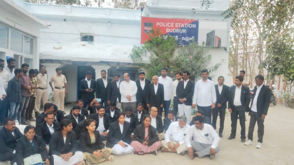 పోలీస్ స్టేషన్ ఎదుట న్యాయవాదుల ధర్నా…