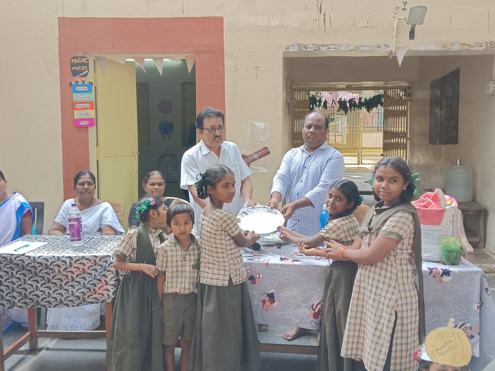 పాఠశాల విద్యార్థులకు 110 స్టీల్ ప్లేట్ల పంపిణీ.