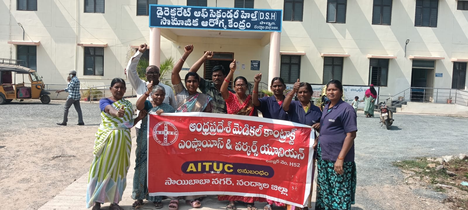 పాణ్యం ప్రభుత్వ ఆసుపత్రిలో దశాబ్దాలుగా పనిచేస్తున్న పారిశుద్ధ కార్మికులపై రాజకీయ వేధింపులు తగదని వారిని తొలగించాలని చూస్తే ఏఐటీయూసీ ఆధ్వర్యంలో పెద్ద ఎత్తున ఆందోళన నిర్వహించి రాజకీయ నాయకులను ఎత్తుకులను అడ్డుకట్ట వేస్తామని ఏఐటియుసి ఆధ్వర్యంలో పాణ్యంప్రభుత్వ ఆస్పత్రి ఎదుట ఆందోళన ధర్నా నిర్వహించడం జరిగింది ఈ కార్యక్రమంలో. ఏఐటీయూసీ జిల్లా నాయకులు పి మురళీధర్. ఆంధ్రప్రదేశ్ మెడికల్ కాంటాక్ట్ ఎంప్లాయిస్ అండ్ వర్కర్ సీనియర్ జిల్లా అధ్యక్ష కార్యదర్శులు పి.సుశీలమ్మ డి.శ్రీనివాసులు పాల్గొని అనంతరం మాట్లాడుతూ,పాణ్యం ప్రభుత్వ ఆసుపత్రిలో దశాబ్దాల నుండి మహిళా కార్మికులు పారిశుద్ధ్య టాయిలెట్ తదితర పనులను నిర్వహిస్తూ ఆసుపత్రిని ఎంతో పరిశుభ్రంగా ఉంచుతున్నారని కానీ ఈ మధ్యకాలంలో కొంతమంది రాజకీయ నాయకులు తమ వారిని ఆసుపత్రిలో పనులకు పెట్టాలని ఉన్నవారి ఉద్యోగాలను ఊడగొట్టాలని చేస్తున్న ప్రయత్నాలను ఆపాలని లేనిపక్షంలో ఏఐటీయూసీ ఆధ్వర్యంలో పెద్ద ఎత్తున ఆందోళన నిర్వహించేందుకు సిద్ధంగా ఉన్నామని పై నాయకులు తెలిపారు. ఈ ధర్నా కార్యక్రమంలో ఆసుపత్రిలో పనిచేస్తున్న మహిళ కార్మికులు. సుబద్ర. ప్రభావతి. వెంకట లక్షమ్మ. లలితమ్మ. నాగ లక్షమ్మ.తదితరులు పాల్గొన్నారు