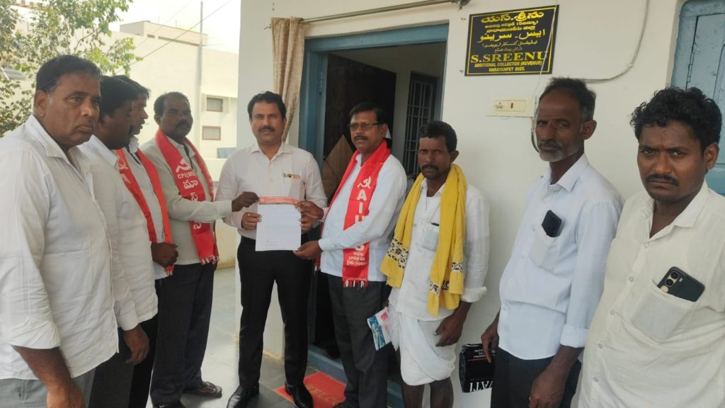 నారాయణపేట జిల్లాలో పత్తి కొనుగోలు కేంద్రాలను ఏర్పాటు చేయాలని అఖిలభారత ఐక్య రైతు సంఘం ఏఐయుకేఎస్ ఆధ్వర్యంలో జిల్లా అడిషనల్ కలెక్టర్ రెవెన్యూ ఎస్ శ్రీనుకి వినతి పత్రం ఇవ్వడం జరిగింది.ఈ సందర్భంగా అఖిలభారత ఐక్య రైతు సంఘం ఏఐయుకేఎస్ జిల్లా ప్రధాన కార్యదర్శి బి యాదగిరి. మాట్లాడుతూ నారాయణపేట జిల్లాలో అత్యధికంగా పత్తి సాగు చేయడం జరిగింది. వర్షాలు సరిగ్గా కురిసి పంట ఏపుగా పెరిగి పంట చేతికి వచ్చే సమయంలో అధిక వర్షాలకు పూత, పిందె రాలి పంట దిగుబడి సగానికి పడిపోయిందని అన్నారు. చేతికి వచ్చిన పంటను అమ్ముకుందామంటే మార్కెట్లో అత్యధికంగా 7500 నుండి అత్యల్పంగా 4,500 వరకు ధర చెబుతున్న రైతుకు సరాసరి 5500 నుండి 6000 వరకు మాత్రమే ధర వస్తుందన్నారు. దీనితో రైతులు పెట్టిన పెట్టుబడి చేతికి రాక అప్పుల ఊబిలో కూరుకపోయే పరిస్థితి ఉందన్నారు. రైతుకు కొంతమేర ఊరట ఇవ్వాలంటే ప్రభుత్వం తక్షణమే కాటన్ కార్పొరేషన్ ఆఫ్ ఇండియా సీసీఐ ద్వారా పత్తి కొనుగోలు కేంద్రాలను ఏర్పాటు చేసి తేమశాతం 20 ఉన్న ప్రభుత్వం ప్రకటించిన ధరకు రూ,, 8110/-లకు కొనుగోలు చేయాలన్నారు. కేంద్రంలో అధికారంలో ఉన్న బిజెపి ప్రభుత్వ విధానాల వల్ల దేశ వ్యవసాయ రంగం పూర్తిగా సంక్షోభానికి గురవుతుందని అన్నారు. దేశవ్యాప్తంగా 60 లక్షల కుటుంబాలకు పైగా ప్రతి పంటను సాగు చేస్తున్న వారికి సరైన ప్రోత్సాహకాలు ఇచ్చి ఆదుకోవాలి కానీ కేంద్రంలోని బిజెపి ప్రభుత్వం దీనికి భిన్నంగా వ్యవహరిస్తూన్నది. భారత్ -అమెరికా పరస్పర ఒప్పందంలో భాగంగా దేశ ప్రధాని నరేంద్ర మోడీ అమెరికా ఒత్తిడికి గురై పత్తిపై ఉన్న 11% సుంకాన్ని రద్దు చేయడం దేశ పత్తి రైతులకు గొడ్డలి పెట్టు లాంటిది అన్నారు. స్వామినాథన్ సిఫారసుల ప్రకారం రైతు పెట్టుబడి పై 50% C2+ 50 కలిపి ధర నిర్ణయించాలి ఈ రకంగా కాకుండా ప్రస్తుత ఖరీఫ్ సీజన్ కు పత్తికి కేంద్ర ప్రభుత్వం ప్రకటించిన మద్దతు ధర పొడవు పింజారాకానికి 8110/- రూ,,లు, మధ్యస్థ రకానికి 7710/-రూ,, లుగా నిర్ణయించడం జరిగింది. స్వామినాథన్ సిఫారసుల ప్రకారం కనీస మద్దతు ధర పత్తికి 10075 రూపాయలు ఇవ్వాలి. కేంద్ర ప్రభుత్వం ప్రకటించిన పై ధరలు కూడా ప్రస్తుతం దేశంలో అమలు కావడం లేదు ప్రస్తుతo నారాయణపేట జిల్లాలో పత్తి మార్కెట్లో మెజారిటీగా యావరేజ్ రేటు 6000 మాత్రమే ధర చెల్లిస్తున్నారన్నారు. అధిక వర్షాల కారణంగా పత్తి దిగుబడి 3,4 క్వింటాళ్లు మాత్రమే దిగుబడి వస్తుంది. అధిక పెట్టుబడులు పెట్టి అప్పుల పాలై రైతు తీవ్రమైన నష్టానికి గురవుతున్నారన్నారు. దీని కారణంగా రైతులు ఆత్మహత్యలకు పాల్పడుతున్నారు. నష్టపోయిన రైతాంగాన్ని ప్రభుత్వం ఆదుకోవాలని డిమాండ్ చేశారు. కేంద్ర ప్రభుత్వం అవలంబిస్తున్న రైతు వ్యతిరేక విధానాలకు వ్యతిరేకంగా దేశ ప్రజలు ఉద్యమిం