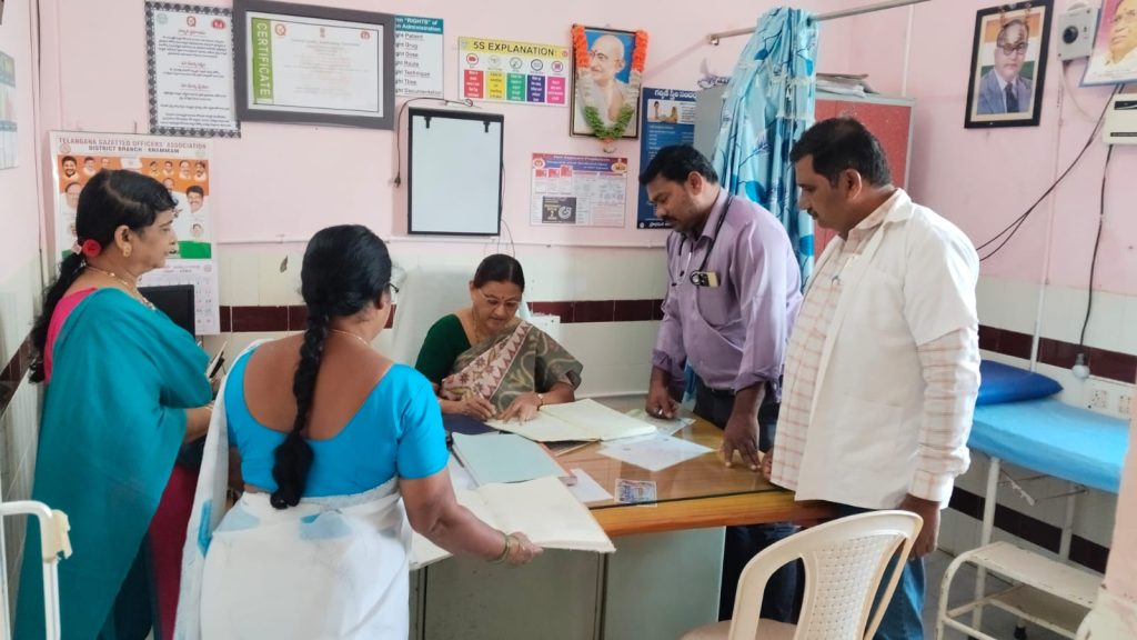 ఏన్కూరు మండలం డాక్టర్ కళావతి బై ఏన్కూర్ ప్రాథమిక ఆరోగ్య కేంద్రంలో ఆకస్మిక తనిఖీ చేశారు దీనిలో భాగంగా ఆసుపత్రిలోని వైద్య సేవలను గురించి అడిగి సమాచారంను తెలుసుకున్నారు రికార్డులను పరిశీలన కాన్పుల రిజిస్టర్ ల్యాబ్ రికార్డులను ఫార్మసీ రికార్డులను తనిఖీ చేశారు ఏ న్ సి రిజిస్ట్రేషన్ ను 100% పూర్తి చేయవలసిందిగా ఆదేశించారు డ్యూటీ విషయంలో సమయపాలన ప్రతి ఒక్కరు తప్పకుండా పాటించాలని సూచనలు చేయడం జరిగింది
