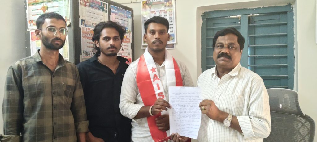 మండల విద్యాధికారి కి వినతి పత్రం అందజేసిన ఏఐఎస్ఎఫ్ నాయకులు.
