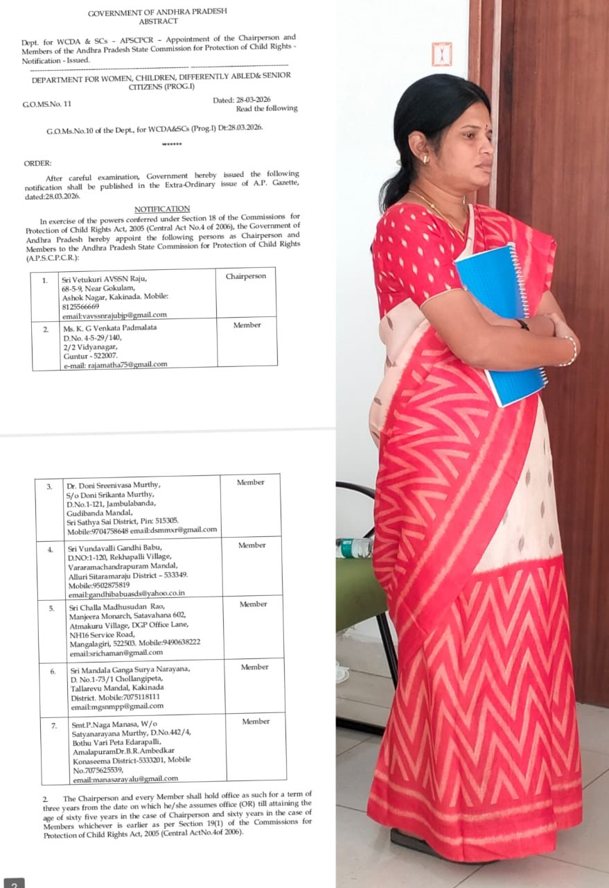 ) డాక్టర్ బి. ఆర్ అంబేద్కర్ కోనసీమ జిల్లా అమలాపురం .ఆంధ్రప్రదేశ్ రాష్ట్ర బాలల హక్కుల పరిరక్షణ కమిషన్ సభ్యురాలిగా అమలాపురం నియోజకవర్గానికి చెందిన జనసేన పార్టీ నాయకురాలు డాక్టర్ పి. నాగ మానస నియమితులయ్యారు. దీనికి సంబంధించిన ప్రభుత్వం నుంచి శనివారం ఆదేశాలు వెలువడ్డాయి. చైర్ పర్సన్ తో పాటు ఆరుగురు సభ్యులును నియమిస్తూ ఆదేశాలు జారీ చేశారు ఆమె నియామకం పట్ల డాక్టర్ బి.ఆర్ అంబేద్కర్ కోనసీమ జిల్లా బిజెపి మోకా వెంకట సుబ్బారావు మరియు పలువురు హర్షం వ్యక్తం చేశారు. అంతేకాకుండా ఆమె సేవలు రాష్ట్రానికి మార్గదర్శకంగా నిలుస్తాయనే విశ్వాసాన్ని వ్యక్తం చేస్తున్నారు. కమిషన్ సభ్యురాలిగా నియమితులైన డాక్టర్ నాగ మానసను బిజెపి మోకా వెంకట సుబ్బారావు అభినందించారు.