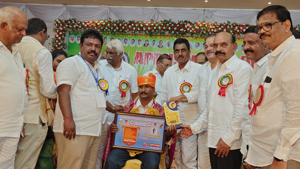 ఆంధ్రప్రదేశ్ ప్రయివేట్ అన్ ఎయిడెడ్ స్కూల్స్ మేనేజ్మెంట్ అసోసియేషన్ (అపుస్మా) వారి ఆధ్వర్యంలో స్థానిక ఆర్కే ఫంక్షన్ హాల్ నందు నిర్వహించిన అపుస్మా బెస్ట్ టీచర్స్ అవార్డు ఫంక్షన్ కు ముఖ్యఅతిథిగా ఆంధ్రప్రదేశ్ రాష్ట్ర న్యాయశాఖ మరియు మైనారిటీ సంక్షేమ శాఖ మంత్రివర్యులు ఎన్ఎండి ఫరూక్ , అపుస్మా చైర్మన్ ఎమ్మెల్సీ రామచంద్రారెడ్డి హాజరయ్యారు . ఈ కార్యక్రమానికి అపుస్మా నంద్యాల జిల్లా అధ్యక్షులు బిజ్జం సుబ్బారెడ్డి అధ్యక్షత వహించారు.ఈ సందర్భంగా మంత్రివర్యులు ఎన్ఎండి ఫరూక్ మాట్లాడుతూ ప్రభుత్వ ఉపాధ్యాయులకు మాత్రమే ప్రభుత్వం ఉత్తమ ఉపాధ్యాయుల అవార్డులను ప్రదానం చేస్తుందని దాన్ని ఆధారంగా తీసుకొని ప్రవేట్ స్కూల్లో మంచి బోధన చేసే వారిని కూడా ఉత్తమ ఉపాధ్యాయులుగా గుర్తించాలని ఉద్దేశంతో ఆంధ్రప్రదేశ్ ప్రవేట్ అన్ ఎయిడెడ్ స్కూల్స్ మేనేజ్మెంట్ అసోసియేషన్ (అపుస్మా) వారు నిర్వహించిన ఈ అవార్డు కార్యక్రమం మంచి శుభపరిణామం అని అన్నారు. ఉపాధ్యాయులు దేశ భవిష్యత్తుకు మార్గదర్శకాలని , జిల్లా ఉత్తమ ఉపాధ్యాయుల అవార్డు పొందిన వారికి అభినందనలు తెలియజేశారు . వినూత్న బోధనా పద్ధతులలో , విద్యార్థుల వృద్ధికి అంకితభావం, క్లిష్ట పరిస్థితుల్లోనూ అభ్యాస విజయాలను పెంపొందడంలో , స్ఫూర్తిదాయకమైన బోధన వంటి విషయాల్లో ఉత్తమ ఉపాధ్యాయులుగా ఎంపికైన వారికి అపుస్మా వారి బెస్ట్ టీచర్స్ అవార్డుల ప్రదానోత్సవంలో గుర్తింపు దక్కిందన్నారు . ఉపాధ్యాయులకు ఏదైనా సమస్యలు ఉంటే నా దృష్టికి తీసుకొని రావాలని వాటిని కచ్చితంగా పరిష్కరిస్తానని తెలియజేశారు . అనంతరం అపుస్మా బెస్ట్ టీచర్స్ అవార్డు లోగోను ఆవిష్కరించారు. అలాగే బెస్ట్ టీచర్స్ అవార్డు పొందిన వారిని మేమేంటోతో సన్మానించారు.ఈ కార్యక్రమంలో అపుస్మా స్టేట్ ప్రెసిడెంట్ తులసి విష్ణు ప్రసాద్ , స్టేట్ వర్కింగ్ ప్రెసిడెంట్ రమణారెడ్డి , నంద్యాల టిడిపి జిల్లా ప్రధాన కార్యదర్శి ఎన్ఎండి ఫిరోజ్ , అపుస్మా స్టేట్ వైస్ ప్రెసిడెంట్ & శాంతినికేతన్ స్కూల్స్ అధినేత సుధాకర్ , రామకృష్ణ విద్య సంస్థల అధినేత డాక్టర్ జి రామకృష్ణారెడ్డి , గురు రాఘవేంద్ర విద్యాసంస్థల అధినేత దస్తగిరి రెడ్డి , రావుస్ విద్యాసంస్థల అధినేత అప్పారావు , కేశవరెడ్డి విద్యా సంస్థల అధినేత నాగిరెడ్డి కేశవరెడ్డి , వెంకటస్వామి , వికాస్ వలి , ఇషాక్ వలి , హుస్సేన్ భాష , ఉత్తేజ్ కుమార్ , హుస్సేన్ వలి , మోహిన్ మరియు భారీ సంఖ్యలో ఉపాధ్యాయులు పాల్గొన్నారు