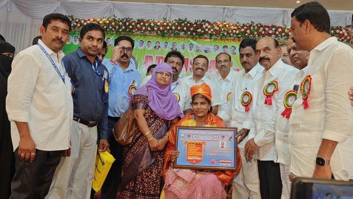 ఆంధ్రప్రదేశ్ ప్రయివేట్ అన్ ఎయిడెడ్ స్కూల్స్ మేనేజ్మెంట్ అసోసియేషన్ (అపుస్మా) వారి ఆధ్వర్యంలో స్థానిక ఆర్కే ఫంక్షన్ హాల్ నందు నిర్వహించిన అపుస్మా బెస్ట్ టీచర్స్ అవార్డు ఫంక్షన్ కు ముఖ్యఅతిథిగా ఆంధ్రప్రదేశ్ రాష్ట్ర న్యాయశాఖ మరియు మైనారిటీ సంక్షేమ శాఖ మంత్రివర్యులు ఎన్ఎండి ఫరూక్ , అపుస్మా చైర్మన్ ఎమ్మెల్సీ రామచంద్రారెడ్డి హాజరయ్యారు . ఈ కార్యక్రమానికి అపుస్మా నంద్యాల జిల్లా అధ్యక్షులు బిజ్జం సుబ్బారెడ్డి అధ్యక్షత వహించారు.ఈ సందర్భంగా మంత్రివర్యులు ఎన్ఎండి ఫరూక్ మాట్లాడుతూ ప్రభుత్వ ఉపాధ్యాయులకు మాత్రమే ప్రభుత్వం ఉత్తమ ఉపాధ్యాయుల అవార్డులను ప్రదానం చేస్తుందని దాన్ని ఆధారంగా తీసుకొని ప్రవేట్ స్కూల్లో మంచి బోధన చేసే వారిని కూడా ఉత్తమ ఉపాధ్యాయులుగా గుర్తించాలని ఉద్దేశంతో ఆంధ్రప్రదేశ్ ప్రవేట్ అన్ ఎయిడెడ్ స్కూల్స్ మేనేజ్మెంట్ అసోసియేషన్ (అపుస్మా) వారు నిర్వహించిన ఈ అవార్డు కార్యక్రమం మంచి శుభపరిణామం అని అన్నారు. ఉపాధ్యాయులు దేశ భవిష్యత్తుకు మార్గదర్శకాలని , జిల్లా ఉత్తమ ఉపాధ్యాయుల అవార్డు పొందిన వారికి అభినందనలు తెలియజేశారు . వినూత్న బోధనా పద్ధతులలో , విద్యార్థుల వృద్ధికి అంకితభావం, క్లిష్ట పరిస్థితుల్లోనూ అభ్యాస విజయాలను పెంపొందడంలో , స్ఫూర్తిదాయకమైన బోధన వంటి విషయాల్లో ఉత్తమ ఉపాధ్యాయులుగా ఎంపికైన వారికి అపుస్మా వారి బెస్ట్ టీచర్స్ అవార్డుల ప్రదానోత్సవంలో గుర్తింపు దక్కిందన్నారు . ఉపాధ్యాయులకు ఏదైనా సమస్యలు ఉంటే నా దృష్టికి తీసుకొని రావాలని వాటిని కచ్చితంగా పరిష్కరిస్తానని తెలియజేశారు . అనంతరం అపుస్మా బెస్ట్ టీచర్స్ అవార్డు లోగోను ఆవిష్కరించారు. అలాగే బెస్ట్ టీచర్స్ అవార్డు పొందిన వారిని మేమేంటోతో సన్మానించారు.ఈ కార్యక్రమంలో అపుస్మా స్టేట్ ప్రెసిడెంట్ తులసి విష్ణు ప్రసాద్ , స్టేట్ వర్కింగ్ ప్రెసిడెంట్ రమణారెడ్డి , నంద్యాల టిడిపి జిల్లా ప్రధాన కార్యదర్శి ఎన్ఎండి ఫిరోజ్ , అపుస్మా స్టేట్ వైస్ ప్రెసిడెంట్ & శాంతినికేతన్ స్కూల్స్ అధినేత సుధాకర్ , రామకృష్ణ విద్య సంస్థల అధినేత డాక్టర్ జి రామకృష్ణారెడ్డి , గురు రాఘవేంద్ర విద్యాసంస్థల అధినేత దస్తగిరి రెడ్డి , రావుస్ విద్యాసంస్థల అధినేత అప్పారావు , కేశవరెడ్డి విద్యా సంస్థల అధినేత నాగిరెడ్డి కేశవరెడ్డి , వెంకటస్వామి , వికాస్ వలి , ఇషాక్ వలి , హుస్సేన్ భాష , ఉత్తేజ్ కుమార్ , హుస్సేన్ వలి , మోహిన్ మరియు భారీ సంఖ్యలో ఉపాధ్యాయులు పాల్గొన్నారు