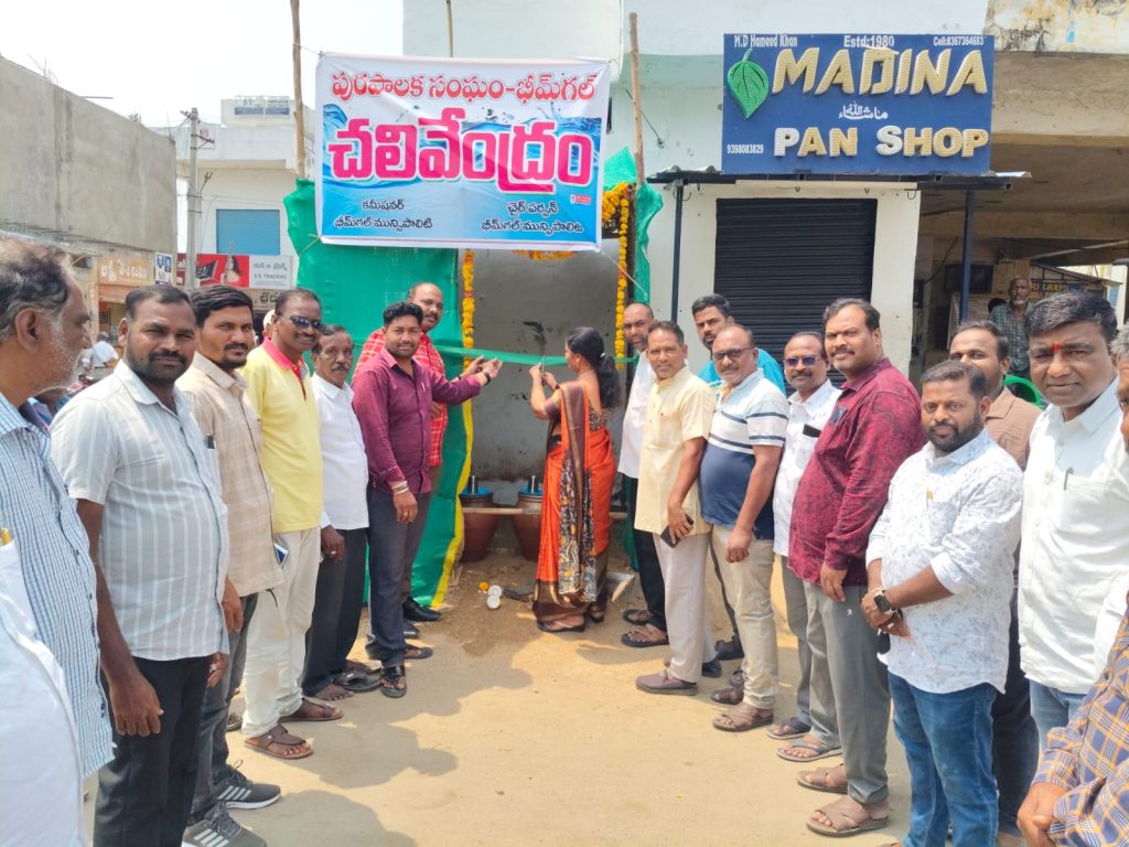 ప్రభుత్వ ఆదేశాల మేరకు భీంగల్ పట్టణంలోని పాత బస్టాండ్ ఏరియాలో మున్సిపాలిటీ ఆధ్వర్యంలో చలివేంద్రం ఏర్పాటు చేయడం జరిగిందని కమిషనర్ గోపు గంగాధర్ తెలిపారు. చలివేంద్రాన్ని మున్సిపల్ చైర్ పర్సన్ బోదిరే నాగమణి స్వామి శనివారం చలివేంద్రాన్ని ప్రారంభించారు. ప్రజలv సౌకర్యార్థం బస్టాండ్ ప్రాంతంలో చలివేంద్రం ఏర్పాటు చేయడం జరిగిందని తెలిపారు. ఈ సందర్భంగా చైర్ పర్సన్ మాట్లాడుతూ కిరాణా వర్తక సంఘం యూనియన్ సభ్యులు వారి తరఫున మంచినీటిని ఉచితంగా సరఫరా చేయడానికి ముందుకు రావడం అభినందనీయమని చైర్ పర్సన్ అన్నారు. ఈ కార్యక్రమంలో కౌన్సిలర్లు తోట సతీష్. అంజుం ఆలీ. మేనేజర్ నరేందర్. వార్డ్ ఆఫీసర్స్. కిరాణా వర్తక యూనియన్ సభ్యులు రవి. సూరజ్.అనిల్. అభిలాష్. రాజు. నాయకులు దినేష్ నవీన్ తదితరులు పాల్గొన్నారు