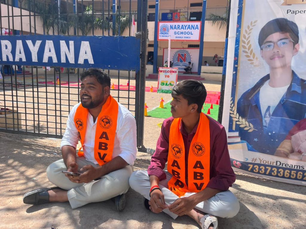 అఖిల భారతీయ విద్యార్థి పరిషత్ మహిషా శాఖ ఆధ్వర్యంలో స్థానిక నారాయణ పాఠశాలలో ముందస్తు ఫీజులు వసూలు చేస్తున్న నారాయణ పాఠశాలలో గత కొన్ని రోజుల నుండి 9 వ తరగతి విద్యార్థులకు 10 వ తరగతి అడుగు పెట్టక ముందే విద్యార్థుల తల్లిదండ్రులు నుండి 50% శాతం 10 వ తరగతికి ఫీజ్ ను వసూలు చేయడం జరుగుతుంది అని విద్యార్థుల తల్లిదండ్రులు ఎం ఈ ఓ సార్ తెలియజేయడం జరిగింది ఆయన అ విషయం పట్టించుకోకపోవడం తో ఏబీవీపీ నాయకులకు చెప్పడం జరిగింది ఈ విషయం తెలుసుకున్న ఏబీవీపీ నాయకులు నారాయణ పాఠశాల వద్ద ఆందోళన చేపట్టడం జరిగింది. ఈ విషయం ఎం ఈ ఓ తెలిసిన వెంటనే పాఠశాలకు రావడం జరిగింది. ఈ విషయం పై ఏబీవీపీ నాయకుడు స్టేట్ హాస్టల్ కో కన్వీనర్ గంగప్రసాద్ మాట్లాడుతూ ఈ పేద ధనిక విద్యార్థులు ఈ పాఠశాలలో చదువుకుంటున్నారు అలాగే రైతు కుటుంబాల నుండి విద్యార్థులు ఈ పాఠశాలలో చదువుకుంటే అలాగే 9 వ తరగతి పూర్తి కాక ముందే 10 వ తరగతి చదువు కోసం ముందుగా పాఠశాల లో 50% 10 వ తరగతి ఫీజ్ ను చెల్లించాలి అని విద్యార్థుల తల్లిదండ్రులు కి ఇబ్బంది పెట్టడం జరుగుతుంది అని ఈ పాఠశాల పై ఎం ఈ ఓ వెంటనే చర్యలు తీసుకోవాలని అలాగే 18 ముందుగా తీసుకున్న ఫీజ్ ను వెంటనే విద్యార్థుల తల్లిదండ్రులకు తిరిగి ఇవ్వాలని అలాగే పాఠశాలకు షోకస్ నోటీస్ ఎంఈఓ జారీ చేయాలి అని అలాగే ఈ విషయం పై కఠిన చర్యలు తీసుకోవాలని లేని పక్షంలో ఏబీవీపీ పెద్ద ఎత్తున ఆందోళన కార్యక్రమాలు చేపడతామని తెలియజేయడం జరిగింది