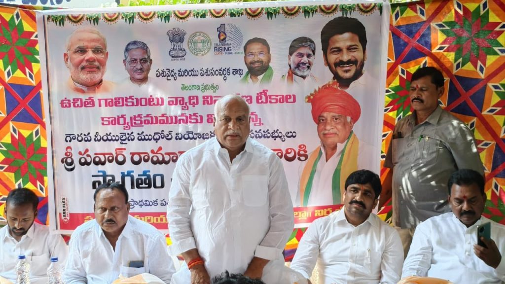 రైతుల సంక్షేమం, పశుసంపద రక్షణలో భాగంగా పశు వైద్య మరియు పశుసంవర్ధక శాఖ ఆధ్వర్యంలో ఉచిత గాలికుంటు వ్యాధి నివారణ టీకాల కార్యక్రమాన్ని ప్రారంభించారు. ఈ కార్యక్రమానికి ముఖ్య అతిథిగా ముధోల్ శాసనసభ్యులు శ్రీ పవార్ రామారావు పటేల్, హాజరై కార్యక్రమాన్ని ప్రారంభించారు.ఈ సందర్భంగా ఎమ్మెల్యే మాట్లాడుతూ రైతులు, పశుపోషకుల అభివృద్ధే కేంద్ర ,రాష్ట్ర ప్రభుత్వ ప్రధాన లక్ష్యమని అన్నారు. పశుసంపదను కాపాడేందుకు గాలికుంటు వంటి వ్యాధుల నివారణకు టీకాలు ఎంతో కీలకమని పేర్కొన్నారు. ప్రభుత్వం రైతుల సంక్షేమం కోసం అనేక పథకాలను అమలు చేస్తూ పశుసంవర్ధక రంగానికి ప్రత్యేక ప్రాధాన్యం ఇస్తోందన్నారు. రైతులు పశువులకు తప్పనిసరిగా టీకాలు వేయించుకోవాలని, పశుసంపదను రక్షించుకోవాలని సూచించారు.ఈ కార్యక్రమంలో పశు వైద్య శాఖ అధికారులు, స్థానిక ప్రజాప్రతినిధులు, పార్టీ నాయకులు, కార్యకర్తలు మరియు రైతులు పాల్గొన్నారు.