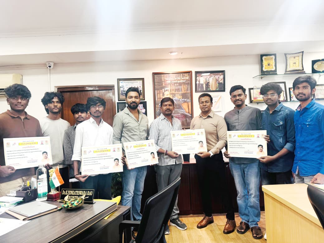 యూనివర్సిటీ లో జనవరి 4 వ తేదీన ఎల్లమ్మబండలో మేర యువ భారత్ సభ్యులు కుమార్ యాదవ్ ఆధ్వర్యంలో మత్తు పదార్థాల నిర్మూలన కొరకు నిర్వహించే యువ చైతన్య యాత్ర పోస్టర్ ను ప్రారంభించిన యూనివర్సిటీ రిజిస్టర్ ప్రొఫెసర్ వెంకటేశ్వర రావు. ఈ సందర్భంగా రిజిస్టర్ మాట్లాడుతూ యువత మత్తుకు బానిస కాకుండా ఉన్నత స్థాయికి ఎలా ఎదగాలో నేర్చుకోవాలి అన్నారు. మత్తు పదార్థాలతో యువత జీవితాలను నాశనం చేసుకోవద్దు అన్నారు. కుమార్ యాదవ్ మాట్లాడుతూ సమాజహితం కోసం నిర్వహించే ఈ యాత్రలో పెద్ద ఎత్తున యువత పాల్గొని విజయవంతం చెయ్యాలి అన్నారు. ఈ కార్యక్రమంలో యువ నాయకులు రామకృష్ణ, సందీప్, సభ్యులు జయరాం,పవన్, సాయి రామ్, రాంచరణ్, యెషోవర్ధన్, విక్రమ్,రోహిత్ తదితరులు పాల్గొన్నారు.