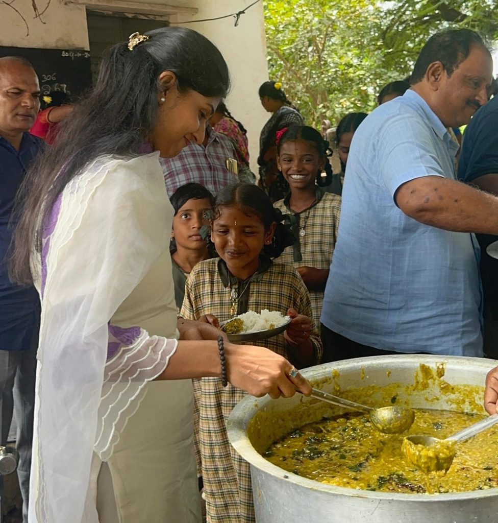మహానంది మండలం తిమ్మాపురం లోని జిల్లా పరిషత్ ఉన్నత పాఠశాలలో మధ్యాహ్నం భోజనాన్ని పరిశీలించిన ఎంపీపీ బుడ్డారెడ్డి యశస్వని, ఈ సందర్భంగా విద్యార్థులతో మాట్లాడి మధ్యాహ్న భోజన నిర్వహణ గురించి అడిగి తెలుసుకున్నారు. అనంతరం భోజనాన్ని, స్టాక్‌ రూమ్‌ను పరిశీలించారు. విద్యార్థులకు అందించే భోజనం నాణ్యత విషయంలో రాజీపడేది లేదని స్పష్టం చేశారు. మెనూ సక్రమంగా అమలు చేయాలని, నాణ్యమైన భోజనం అందించాలని నిర్వాహకులకు సూచించారు. అనంతరం విద్యార్థులకు భోజనం వడ్డించి కలిసి భోజనం చేశారు. వీరితోపాటు ఈ కార్యక్రమంలో మండల విద్యాధికారి రామసుబ్బయ్య, పాఠశాల ప్రిన్సిపల్ మరియు తదితరులు పాల్గొన్నారు.