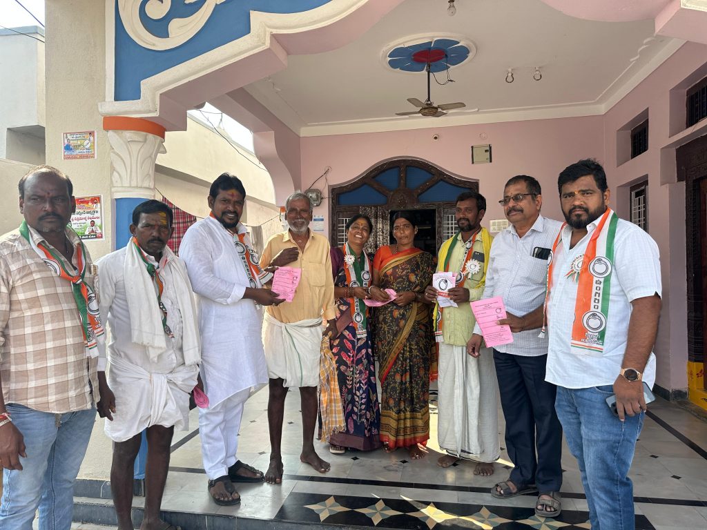 మక్తల్ మండలం మాధ్వార్ గ్రామంలో ఎన్నికల ప్రచారంలో భాగంగా కాంగ్రెస్ సర్పంచ్ అభ్యర్థి సకిరమోలా నరసింహ మాట్లాడుతూ మీ బిడ్డగా సర్పంచ్ ఎన్నికల్లో ఆశీర్వదించి గెలిపిస్తే అభివృద్ధి చేసి చూపిస్తానని మాధ్వర్ కాంగ్రెస్ సర్పంచ్ అభ్యర్థి సక్రమొల్ల నరసింహ అన్నారు. సోమవారం నారాయణపేట జిల్లా మక్తల్ మండల పరిధిలోని మాధ్వార్ లో వార్డు అభ్యర్థులు కాంగ్రెస్ నాయకులతో కలిసి విస్తృత ప్రచారం చేశారు. ఈ సందర్భంగా ఆయన మాట్లాడుతూ నిస్వార్ధంగా ప్రజాసేవ చేసేందుకు రాజకీయాల్లోకి వచ్చానని ప్రతి ఒక్కరు ఆదరించి ఉంగరం గుర్తుకు ఓటు వేసి గెలిపించాలని విజ్ఞప్తి చేశారు.ప్రతి వాడలో డ్రైనేజీ సిసి రోడ్లు వేయడంతోపాటు విద్య రంగాలకు ప్రత్యేక కృషి చేస్తానన్నారు. ప్రజల కోరిక మేరకు సర్పంచ్ అభ్యర్థిగా ఎన్నికల్లో నిలిచానని అందరి నమ్మకాన్ని వమ్ము చేయకుండా అభివృద్ధికి కృషి చేస్తానని ప్రతి ఒక్కరూ తనకు పట్టం కట్టాలని కోరారు. ఈ కార్యక్రమంలో నాయకులు రాజేశ్వరరావు, వడ్ల సత్యనారాయణ.గాండ్ల రాములు. కమ్మరి బ్రహ్మయ్య. బొంబాయి శంకర్. అరికెరి సవరప్ప. కురువ వెంకటరమణ. గణపురం వెంకటప్ప. బుడబోయి శాంతప్ప. బాట విశ్వనాథ్.ప్యాట నాగమ్మ. గ్రామ కాంగ్రెస్ నాయకులు మహిళలు గ్రామస్తులు తదితరులు పాల్గొన్నారు.