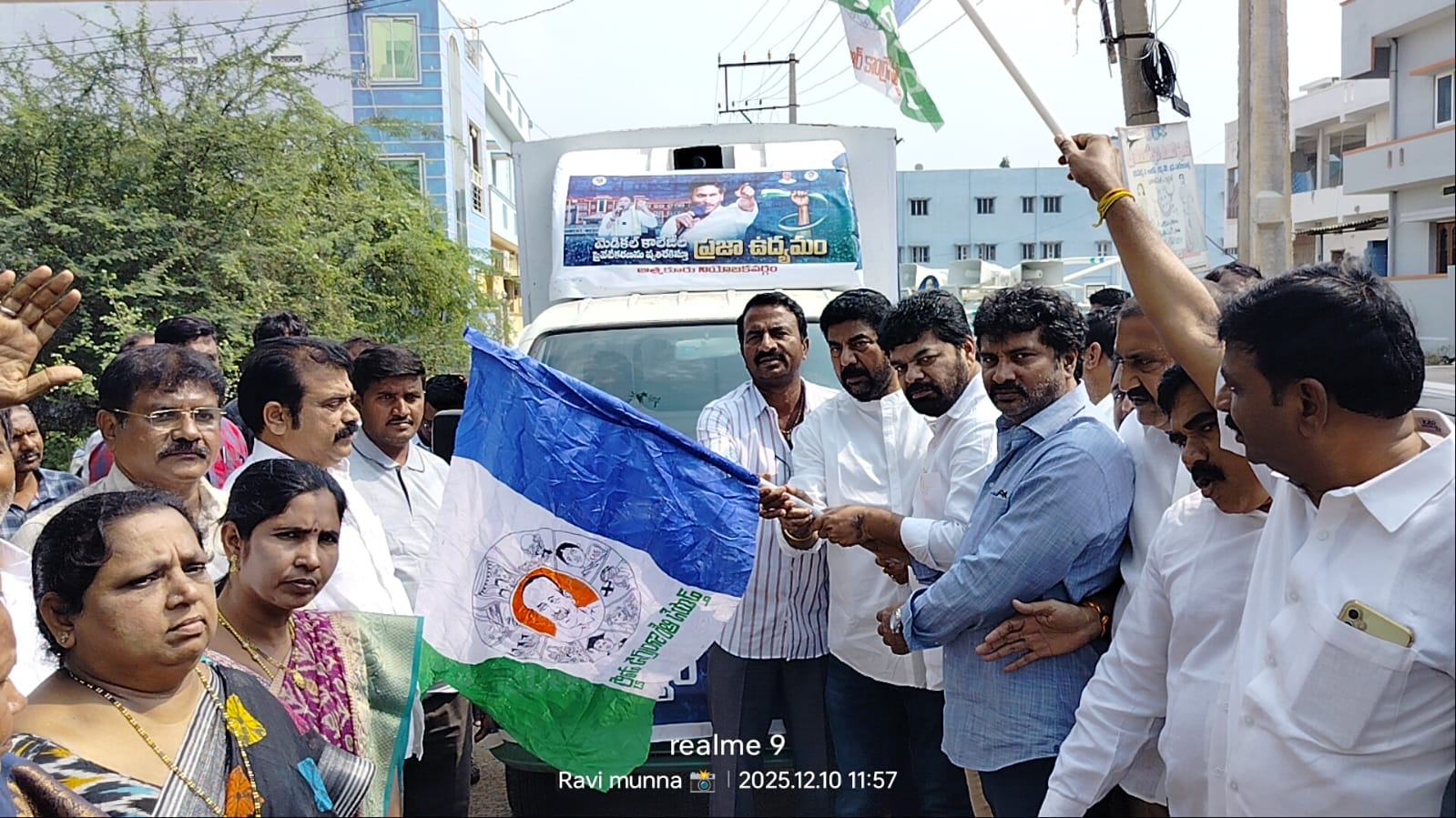 అనుకూలమైన వారికి అందించేందుకే మెడికల్ కళాశాలల ప్రైవేటీకరణ నియోజకవర్గ పరిశీలకులు పేర్నాటినియోజకవర్గాల సంతకాల ప్రతులు జిల్లా కేంద్రానికిజెండా ఊపి ప్రారంభించిన నాయకులు, ప్రజాప్రతినిధులురాష్ట్రంలో ప్రభుత్వ మెడికల్ కళాశాలలను ప్రైవేటీకరణ చేసి తమ అనుకూలమైన వారికి పీపీపీ విధానంలో కట్టబెట్టి ప్రజలను దగా చేసేందుకు సిద్దమవుతున్నారని, వైఎస్సార్సీపీ అధ్యక్షుడు వైఎస్ జగన్ మోహన్ రెడ్డి నేతృత్వంలో అందరం కలిసి దానిని అడ్డుకుందామని ఆత్మకూరు నియోజకవర్గ పార్టీ పరిశీలకులు, రాష్ట్ర కార్యదర్శి పేర్నాటి కోటేశ్వర రెడ్డి అన్నారు. మెడికల్ కళాశాలల ప్రైవేటీకరణను వ్యతిరేకిస్తూ పార్టీ అధ్యక్షుడు, మాజీ సీఎం వైఎస్ జగన్మోహన్ రెడ్డి పిలుపు మేరకు మాజీ ఎమ్మెల్యే మేకపాటి విక్రమ్ రెడ్డి ఆధ్వర్యంలో నియోజకవర్గంలో నిర్వహించిన కోటి సంతకాల సేకరణ ప్రతులను జిల్లా పార్టీ ఉపాధ్యక్షుడు డాక్టర్ సీహెచ్ ఆదిశేషయ్య. కూనం సుధాకర్ రెడ్డి, పార్టీ మున్సిపల్ విభాగ రాష్ట్ర కార్యదర్శి అల్లారెడ్డి ఆనంద్ రెడ్డి, ఆర్టీఐ రాష్ట్ర బాధ్యుడు పూనూరు రామ్మనోహర్ రెడ్డి, ఎస్సీసెల్ రాష్ట్ర విభాగ కార్యదర్శి కొండా వెంకటేశ్వర్లు, జిల్లా ఆర్గనైజింగ్ కార్యదర్శి రమేష్ రెడ్డి, మండలాల కన్వీనర్లు బిజివేముల పిచ్చిరెడ్డి, చెన్ను వెంకటేశ్వర్లు రెడ్డి, పులగం శంకర్ రెడ్డిలతో కలసి బుధవారం జిల్లా కేంద్రమైన నెల్లూరుకు తరలించేందుకు ప్రత్యేక కార్యక్రమం పట్టణంలోని పార్టీ కార్యాలయంలో చేపట్టారు. ముఖ్యఅతిథిగా పాల్గొన్న పేర్నాటి కోటేశ్వర రావు మాట్లాడుతూ కోటి సంతకాల సేకరణలో ప్రభుత్వంపై ప్రజలకు ఉన్న వ్యతిరేకత స్పష్టంగా కనిపించిందని ప్రజల సహకారంతోనే నియోజకవర్గంలో 60వేలకుపైగా సంతకాల సేకరణ జరిగిందన్నారు. పేదలకు వైద్య విద్య, వైద్యం దూరం చేసేలా కూటమి పాలనలో ప్రైవేటీకరణ జీఓను ప్రవేశపెట్టడం దారుణమన్నారు. గత వైఎస్సార్ పాలనలో నాటి ముఖ్యమంత్రి వైఎస్ జగన్మోహన్ రెడ్డి డాక్టర్ బీఆర్ అంబేద్కర్ ఆలోచనల మేరకు విద్యతోనే యువత అభివృద్ధి సాధ్యం అన్న లక్ష్యంతో రాష్ట్రంలో 17 మెడికల్ కళాశాలలను మంజూరు చేయించి అందులో ఏడు కళాశాలలను పూర్తి చేశారన్నారు. ఇంతలో కూటమి ప్రభుత్వం అధికారంలోకి రావడంతో అప్పనంగా మెడికల్ కళాశాలలను ప్రైవేటీకరణకు పూనుకోవడం ప్రజలను దగా చేయడమేనన్నారు. జగనన్న పాలనలో రెండేళ్ల కరోనా సమయంలో వైద్యసేవలు ఇంటింటికి అందించారన్నారు. సచివాలయాలు, వాలంటీర్ల వ్యవస్థతో ఇవన్నీ సాధ్యమయ్యాయని, కూటమి పాలనలో ఆ వ్యవస్థలను నాశనం చేశారని దుయ్యబట్టారు. పీహెచ్ సీలకు ఇద్దరు డాక్టర్ల ఏర్పాటు, జగనన్న ఆలోచనల మేరకు జరిగిందన్నారు. ప్రజల్లో వచ్చిన వ్యతిరేకతతో ప్రభుత్వం ఇప్పటికైనా ప్