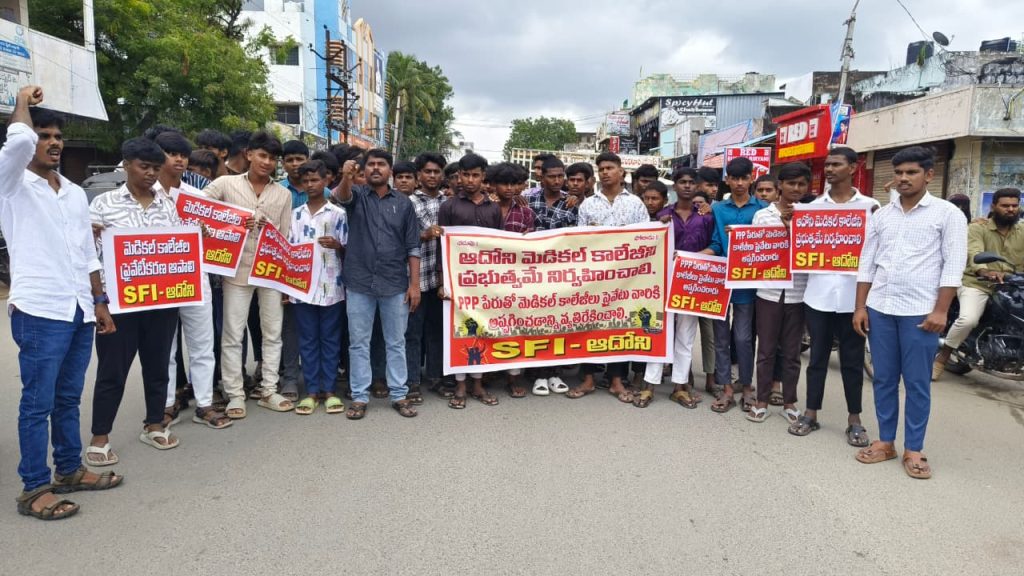 పట్టణ శివారు ఆరెకల్ గ్రామ సమీపంలో నిర్మిస్తున్న ప్రభుత్వ మెడికల్ కళాశాలకు ప్రైవేటీకరణ చేయడం దుర్మా ర్థమని ఎస్ఎఫ్ఐ జిల్లా కార్యదర్శి రంగప్ప, జిల్లా ఉపాధ్యక్షుడు శ్రీనివాసులు ఆవేదన వ్యక్తం చేశారు సోమవారం ప్రవేటీకరణను వ్యతిరేకిస్తూ ఎస్ఎఫ్ఐ ఆధ్వర్యంలో ఆర్ట్స్ కళాశాల రహదారిపై ధర్నా నిర్వహించడం జరిగింది ప్రభుత్వం గ్రామీణులకు మెరుగైన వైద్య సేవలను అందించాలన్న ఉద్దేశంతో ఆదోనిలో ప్రభుత్వ వైద్య కళాశాలలను ఏర్పాటు చేసిందన్నారు. కూటమి ప్రభుత్వం అధికారంలోకి వచ్చాక కళాశాల పనులను నిలిపివేసి పీపీపీ(పబ్లిక్ ప్రైవేటు పార్ట్నర్షిప్ ) పద్ధతిలో కొనసాగించడానికి క్యాబినెట్ తీర్మానం చేయడం అన్యాయమన్నారు. ప్రైవేటీకరణతో పేదలకు వైద్యం అందే పరిస్థితి ఉండదని ప్రభుత్వమే వైద్య కళాశాలను నడపాలని డిమాండ్ చేశారు. పీపీపీ విదానాన్ని రద్దు చేయకపోతే ఉద్యమిస్తామని హెచ్చరించారు ఈ కార్యక్రమంలో ఎస్ఎఫ్ఐ పట్టణ కార్యదర్శి శశిధర్, నాయకులు రిషి, మోహన్, రాజు ,మహేష్,తేజ, మహేష్ తదితరులు పాల్గొన్నారు