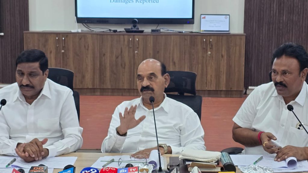 మొంథా తుఫాన్ ప్రభావం వల్ల పంట నష్టపోయిన ప్రతి రైతుకు, బాధిత కుటుంబానికి న్యాయం చేస్తామని రాష్ట్ర న్యాయ, మైనారిటీ సంక్షేమ శాఖ మంత్రి ఎన్ఎండి ఫరూక్, రోడ్లు, భవనాలు, మౌలిక సదుపాయాల శాఖ మంత్రి బిసి జనార్ధన్ రెడ్డిలు అన్నారు. శనివారం కలెక్టరేట్ లోని వీడియో కాన్ఫరెన్స్ హాలులో మొంథా తుఫాను ప్రభావం వల్ల నష్టపోయిన పంట పొలాలు, నష్ట ప్రభావిత ప్రాంతాలపై జిల్లా కలెక్టర్ శ్రీమతి రాజకుమారి గణియా, జాయింట్ కలెక్టర్ కొల్లాబత్తుల కార్తీక్, నందికొట్కూరు శాసనసభ్యులు గిత్తా జయసూర్యలతో కలిసి సంయుక్తంగా అధికారులతో సమీక్షించి అనంతరం పాత్రికేయుల సమావేశం నిర్వహించారు.ఈ సందర్భంగా రాష్ట్ర న్యాయ, మైనారిటీ సంక్షేమ శాఖ మంత్రి ఎన్. ఎం. డీ. ఫరూక్ మాట్లాడుతూ తుఫాన్ ప్రభావం వల్ల రాష్ట్ర వ్యాప్తంగా ప్రధానంగా పంట నష్టం చోటుచేసుకుందని, నిష్పక్షపాతంగా వ్యవసాయ శాఖ అధికారులు క్షేత్రస్థాయిలో పంట నష్టం అంచనాలను ఖచ్చితంగా లెక్కించి నివేదికలు సమర్పించాలని ఆదేశించామని పేర్కొన్నారు. రైతులందరికీ ప్రభుత్వం పూర్తి స్థాయిలో న్యాయం చేస్తుందని మంత్రి హామీ ఇచ్చారు. వాగులు, వంకలు మరియు కుందూ నది పొంగి ప్రవహించిన నేపథ్యంలో ‘రివర్స్ స్ట్రాటజీ’ ద్వారా నీటిని మళ్లించడం వల్ల నంద్యాల పట్టణాన్ని పెద్ద ప్రమాదం నుండి కాపాడగలిగామని తెలిపారు. తుఫాన్ ప్రభావం కారణంగా మున్సిపాలిటీకి కూడా గణనీయమైన నష్టం సంభవించినట్లు పేర్కొన్నారు. ప్రాణ, ఆస్తి నష్టం జరగకుండా ముందస్తు చర్యలు తీసుకున్నామని, ఈ నేపథ్యంలో ముఖ్యమంత్రి నిత్యం పర్యవేక్షిస్తూ జిల్లా యంత్రాంగానికి సమయానుకూల ఆదేశాలు ఇచ్చినట్లు వివరించారు. ప్రభుత్వ యంత్రాంగం సమన్వయంతో వ్యవహరించడంతో ప్రజలను సురక్షితంగా కాపాడగలిగామని అన్నారు. తుఫాన్ సమయంలో వాగుల్లో పొంగిపొర్లుతున్న నీరు రోడ్లపై ప్రవహించడంతో కొంత కాలం పాటు రాకపోకలను నిలిపివేయాల్సి వచ్చిందని చెప్పారు. రాష్ట్రంలో జరిగిన మొత్తం పరిస్థితిని ముఖ్యమంత్రికి సమగ్రంగా నివేదిస్తామని తెలిపారు. తుఫాన్ సమయంలో జిల్లా కలెక్టర్ జి. రాజకుమారి మరియు అధికార యంత్రాంగం రాత్రింబవళ్లు శ్రమించి పరిస్థితిని సమర్థవంతంగా నియంత్రించారని మంత్రి ఫరూక్ ప్రశంసించారు. ప్రజల భద్రత, పంట రక్షణ, మౌలిక వసతుల పునరుద్ధరణ దిశగా అధికారులు నిరంతరం కృషి చేస్తున్నారని తెలిపారు.రోడ్లు భవనాల శాఖ మంత్రి బీసీ జనార్దన్ రెడ్డి మాట్లాడుతూ జిల్లాలో పంట నష్టపోయిన రైతులు ఆందోళన చెందాల్సిన అవసరం లేదని, ప్రభుత్వం ప్రతి ఒక్కరిని ఆదుకుంటుందన్నారు. తుఫాను ప్రభావం ఎక్కువగా ఉండే ప్రాంతాలను ముందుగానే అంచనా వేసి అధికారులు అప్రమత్తం చేసినట్లు చెప్పారు. వరద నీరు రివర్స్ దిశగా మళ్లించే వ