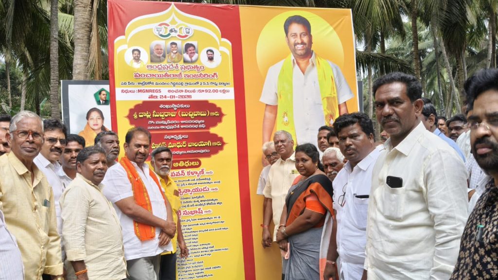 గెద్దనపల్లి గ్రామంలో 92 లక్షలు రూపాయలు వ్యయంతో సిసి రోడ్లు శంకుస్థాపన అనంతర స్వచ్ఛ ఆంధ్ర& స్వర్ణాంధ్ర కార్యక్రమంలో పాల్గొన్నారు అనంతరం ఉప్పిడి గ్రామంలో 50 లక్షలు రూపాయలు వ్యయంతో సీసీ రోడ్ల శంకుస్థాపన మరియు ఆంజనేయ స్వామి వారి 11వ వార్షికోత్సవం వేడుకల్లో పాల్గొన్నారు ఇతర కార్యక్రమం లో పాల్గొన్నారు మండల తాసిల్దార్ రవి కిరణ్ మండల ఎంపీడీవో రాజేశ్వరరావు కార్యక్రమలలో టిడిపి మండల అధ్యక్షులు చెల్లి సురేష్ , ముమ్మడివరం మార్కెటింగ్ యాడ్ చైర్మన్ భాగ్యశ్రీ ,రాష్ట్ర మత్స్య శాఖ కార్పొరేషన్ మాజీ చైర్మన్ నాగిడి నాగేశ్వర రావు, దాట్ల పవన్, మండల మాజీ అధ్యక్షులు నడింపల్లి సుబ్బరాజ, డీసీ చైర్మన్ ఆకాశం శ్రీనివాస్, వెంట్రు సుధీర్ , విత్తనాల బుజ్జి మండల తెలుగు యువత అధ్యక్షుడు వంగా దుర్గ బాబు, కముజు వెంకటరమణ ,రంబాల రమేష్ ,రంబాల దొరబాబు ,దంతులూరి కృష్ణంరాజు, ,వనచర్ల నాగేశ్వర రావు, త్సవటపల్లినాగేంద్ర, త్సవటపల్లి శ్రీనివాస్, మోక బాల ప్రసాద్, నీటి సంఘం అధ్యక్షులు బండారు ఏసు, వాసంశెట్టి రాజేశ్వర రావు, నాయకులు పి ఎస్ యన్ రాజు, కముజు లక్ష్మి రమణా రావు, మోకా అప్పాజీ, నల్లా రామకృష్ణ, సానబోయిన వెంకటేశ్వర రావు, విత్తనాల వెంకట రమణ,.జంగా శ్రీనివాస్, శీలం సూర్యనారాయణ నూకలదుర్గ పంచాయతీ సర్పంచులు కూటమి నాయకులు తదితరులున్నారు.