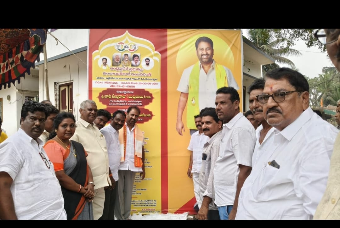 గెద్దనపల్లి గ్రామంలో 92 లక్షలు రూపాయలు వ్యయంతో సిసి రోడ్లు శంకుస్థాపన అనంతర స్వచ్ఛ ఆంధ్ర& స్వర్ణాంధ్ర కార్యక్రమంలో పాల్గొన్నారు అనంతరం ఉప్పిడి గ్రామంలో 50 లక్షలు రూపాయలు వ్యయంతో సీసీ రోడ్ల శంకుస్థాపన మరియు ఆంజనేయ స్వామి వారి 11వ వార్షికోత్సవం వేడుకల్లో పాల్గొన్నారు ఇతర కార్యక్రమం లో పాల్గొన్నారు మండల తాసిల్దార్ రవి కిరణ్ మండల ఎంపీడీవో రాజేశ్వరరావు కార్యక్రమలలో టిడిపి మండల అధ్యక్షులు చెల్లి సురేష్ , ముమ్మడివరం మార్కెటింగ్ యాడ్ చైర్మన్ భాగ్యశ్రీ ,రాష్ట్ర మత్స్య శాఖ కార్పొరేషన్ మాజీ చైర్మన్ నాగిడి నాగేశ్వర రావు, దాట్ల పవన్, మండల మాజీ అధ్యక్షులు నడింపల్లి సుబ్బరాజ, డీసీ చైర్మన్ ఆకాశం శ్రీనివాస్, వెంట్రు సుధీర్ , విత్తనాల బుజ్జి మండల తెలుగు యువత అధ్యక్షుడు వంగా దుర్గ బాబు, కముజు వెంకటరమణ ,రంబాల రమేష్ ,రంబాల దొరబాబు ,దంతులూరి కృష్ణంరాజు, ,వనచర్ల నాగేశ్వర రావు, త్సవటపల్లినాగేంద్ర, త్సవటపల్లి శ్రీనివాస్, మోక బాల ప్రసాద్, నీటి సంఘం అధ్యక్షులు బండారు ఏసు, వాసంశెట్టి రాజేశ్వర రావు, నాయకులు పి ఎస్ యన్ రాజు, కముజు లక్ష్మి రమణా రావు, మోకా అప్పాజీ, నల్లా రామకృష్ణ, సానబోయిన వెంకటేశ్వర రావు, విత్తనాల వెంకట రమణ,.జంగా శ్రీనివాస్, శీలం సూర్యనారాయణ నూకలదుర్గ పంచాయతీ సర్పంచులు కూటమి నాయకులు తదితరులున్నారు.