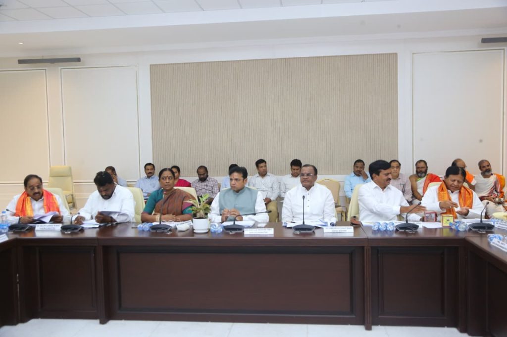 క్యాబినెట్ సబ్ కమిటీ చైర్మన్ మంత్రి శ్రీధర్ బాబు గారి అధ్యక్షతన జరిగిన ఈ సమావేశంలో రాష్ట్ర రోడ్లు, భవనాలు మరియు సినిమాటోగ్రఫీ శాఖ మంత్రి కోమటిరెడ్డి వెంకట్ రెడ్డి గారు పాల్గొన్నారు.రాబోయే గోదావరి పుష్కరాలను భక్తులకు సౌకర్యవంతంగా, భద్రంగా నిర్వహించేందుకు తీసుకోవాల్సిన చర్యలపై సమావేశంలో విస్తృతంగా చర్చించారు. ముఖ్యంగా పుష్కర ఘాట్ల అభివృద్ధి, రహదారి సౌకర్యాలు, తాగునీరు, పారిశుధ్యం, రవాణా మరియు ఇతర మౌలిక వసతుల ఏర్పాటుపై ఆయా శాఖల సమన్వయంతో ముందస్తు ప్రణాళికలు రూపొందించాల్సిన అవసరాన్ని ప్రస్తావించారు.ఈ సమావేశంలో మంత్రులు కొండా సురేఖ, పొంగులేటి శ్రీనివాస్ రెడ్డి, తుమ్మల నాగేశ్వరరావు, అడ్లూరి లక్ష్మణ్ కుమార్, ప్రభుత్వ సలహాదారు సుదర్శన్ రెడ్డి, హర్కర వేణుగోపాల్ మరియు సంబంధిత శాఖల ఉన్నతాధికారులు పాల్గొన్నారు.