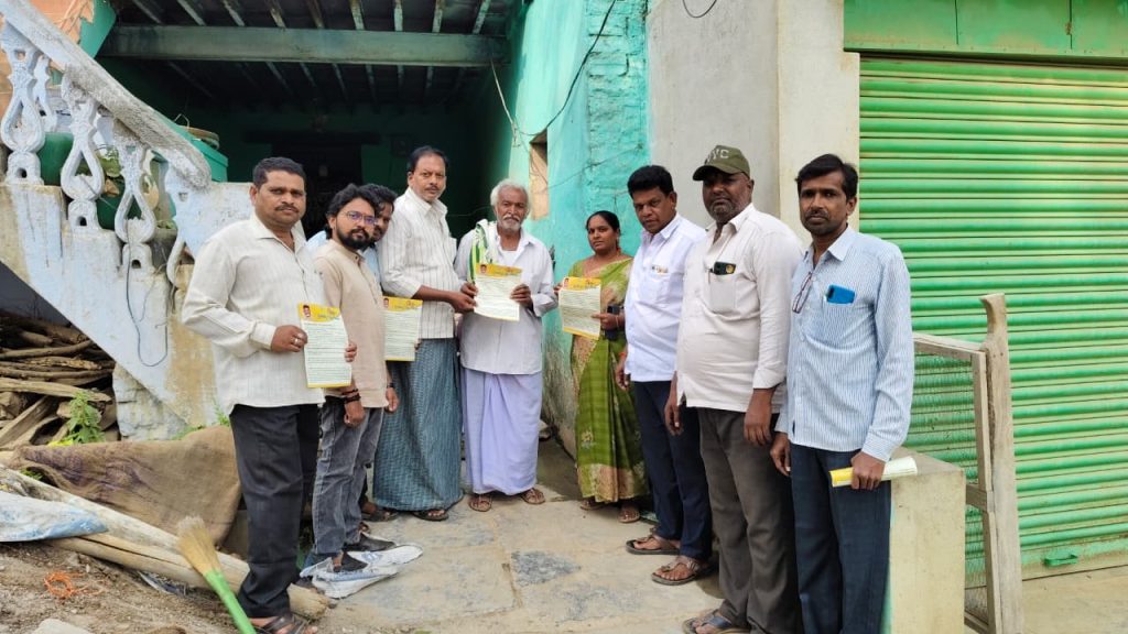 మండలకేంద్రమైన యాడికి లోని సంత మార్కెట్ వీధిలోఉన్నరైతుభరోసా కేంద్రంలోవ్యవసాయ సిబ్బందితోకలిసిరైతన్న మీకోసంకార్యక్రమం ప్రారంభించి,అనంతరం రైతులఇంటివద్దకెళ్లి రైతులతోమండలకన్వీనర్ దడియాలఆదినారాయణ మాట్లాడుతూఅన్నదాత సుఖీభవకార్యక్రమంలో గౌరవముఖ్యమంత్రి చంద్రబాబు నాయుడు రానున్న ఐదు సంవత్సరాలలోరైతును రాజుగాచేసేఐదు విధివిధానాలతో కార్యాచరణ రూపొందించడం జరిగిందని తెలిపారు.నీటి భద్రత: రాష్ట్రంలో ప్రతిఎకరాకుసాగునీరు అందించేదిశగా అసంపూర్తిగాఉన్న ప్రాజెక్టులుపూర్తి చేస్తున్నామనితెలిపారు.