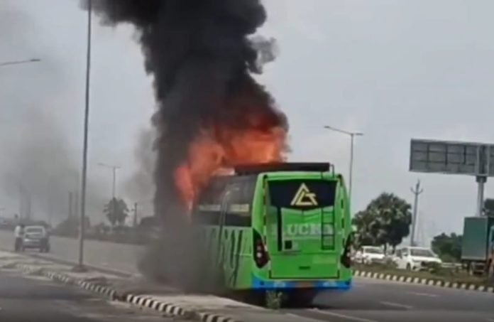 లక్కి ట్రావెల్స్ బస్సు దగ్థం ప్రయాణికులు సురక్షితం