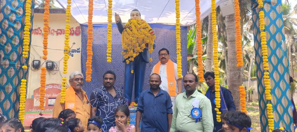 *బాబా సాహెబ్ అంబేద్కర్ 135వ జయంతి సందర్భంగా బిజెపి నాయకులు ఘన నివాళి కాట్రేనికోన ఎస్సీ మోర్చా జిల్లా కార్యవర్గ సభ్యుడు అయితా బత్తుల శ్రీనివాస్ ఆధ్వర్యంలో వడ్డీ పేట బంటుమిల్లి లక్ష్మీ వాడ చెయ్యరు గ్రామాలలో ముమ్మిడివరం మార్కెటింగ్ వైస్ చైర్మన్ గొల కోటి వెంకటరెడ్డి & డైరెక్టర్ మట్ట సూరిబాబు &బిజెపి డాక్టర్ బి.ఆర్ అంబేద్కర్ కోనసీమ జిల్లా ట్రెజరర్ గ్రంధి నానాజీ భారత రాజ్యాంగ నిర్మాత, సంఘ సంస్కర్త, భారతరత్న డాక్టర్ బాబా సాహెబ్ అంబేద్కర్ 135వ జయంతి సందర్భంగా ఘన నివాళి అర్పిస్తున్నాను. గొల్ల కోటి వెంకటరెడ్డి మాట్లాడుతూ అంటరానితనంతో కులవివక్షకు గురై కూడా ఉన్నత విద్యను అభ్యసించి దేశం గర్వించే అత్యున్నత స్థాయికి ఎదిగిన అంబేద్కర్ ఆదర్శప్రాయులు. ప్రపంచంలో బలమైన ప్రజాస్వామ్య దేశంగా మన దేశం నిలుస్తోంది అంటే దానికి కారణం ఆయన మనకు ఇచ్చిన రాజ్యాంగం. సమాన అవకాశాలు, హక్కులు అందించి, ప్రతి పౌరుడికి రాజ్యాంగ రక్షణ కల్పించారు. అలాగే బిజెపి డాక్టర్ బి.ఆర్ అంబేద్కర్ కోనసీమ జిల్లా ట్రెజరర్ గ్రంధి నానాజీ మాట్లాడుతూ అంబేద్కర్ ఆశయ సాధనే మన లక్ష్యం కావాలి. ప్రజాస్వామ్యాన్ని గౌరవిస్తూ, బాధ్యత కలిగిన పౌరుడిగా ఉండడమే ఆ మహనీయునికి మనం ఇచ్చే ఘన నివాళి ఈ కార్యక్రమంలో ఏఎంసి డైరెక్టర్ మట్టా సూరిబాబు తదితరులు పాల్గొన్నారు