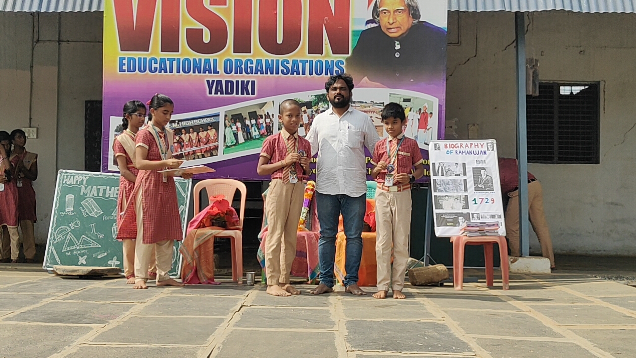 యాడికి గ్రామంలో విజన్ హై స్కూల్ విద్యార్థులు, ఉపాధ్యాయ బృందం గణిత శాస్త్ర పితామహుడు శ్రీనివాస రామానుజన్ జయంతిని పురస్కరించుకొని ఆయనచిత్రపటానికి గణిత ఉపాధ్యాయులచే పూలమాలవేసి నివాళులర్పించారు.రామానుజన్ అతి చిన్న వయసులోనే గణితం పట్ల అసాధారణ ప్రతిభ కనబరిచి, భారతదేశ కీర్తిని ప్రపంచ దేశాలకు ఇనుమడింపజేశారని, ఆయన రాసిన పుస్తకాలలోని సమస్యల కు సమాధానం కనుక్కోవడానికి ఇప్పటి శాస్త్రజ్ఞులకు కూడ కష్టతరమని, దీనిని బట్టి ఆయన మేధో సంపత్తి ఎలాంటిదో అర్థం చేసుకోవచ్చని వివరించడం జరిగింది.గణితం గురించి యాక్టివిటిల రూపంలో విజన్ విద్యార్థుల ప్రదర్శనలు ఎంతగానో ఆకట్టుకున్నాయి.ఈ సందర్బంగాగణిత ఉపాధ్యాయులకు సన్మానంచేయడం జరిగింది.ఈ కార్యక్రమంలో విజన్ ఉపాధ్యాయ బృందం మరియు విద్యార్థులు పాల్గొన్నారు.