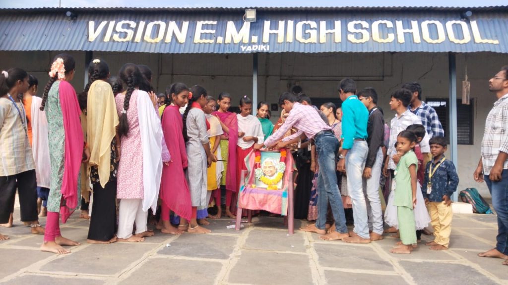 యాడికి పట్టణ కేంద్రంలో ఉన్న విజన్ స్కూల్ నందు డా” ఏ.పీ.జే.అబ్దుల్ కలామ్ జయంతి సందర్భంగా విజన్ ఉపాధ్యాయ బృందం,విద్యార్థులు కలసి ఆయన చిత్రపటానికి పూల మాల వేసి టెంకాయ సమర్పించి నివాళులు అర్పించారు.ఈ సందర్భంగా పాఠశాల కరస్పాండెంట్ విశ్వనాథ్ మాట్లాడుతూ ఆయన మధ్య తరగతి కుటుంబంలో జన్మించాడు అని వార్త పత్రికలను పంచుతూ చదువుకున్నారని, ఫిజిక్స్ లో పట్టా పొంది ఇస్రో లో శాస్త్రవేత్త గా పని చేస్తూ భారత రక్షణ విభాగంలో మిస్సైల్స్ ను కనుగొన్నారని, అలాగే గుండె కు అమర్చే స్టెంట్ ను కనుగొన్నారని, అలాగే గ్రామీణ ప్రాంత విద్యార్థులకు ఉపయోగపడే ట్యాబ్ ను కనుగొని ఎంతో మంది విద్యార్థుల సందేహాలను నివృత్తి చేశారని, అలాగే రాష్ట్రపతిగా పని చేశారని, ఆయన చేసిన సేవలకు గుర్తుగా భారత రత్న అవార్డును భారత ప్రభుత్వం అందజేసిందని తెలియజేయడం జరిగింది.ఈ కార్యక్రమంలో విజన్ ఉపాధ్యాయ బృందం మరియు విద్యార్థులు పాల్గొన్నారు.